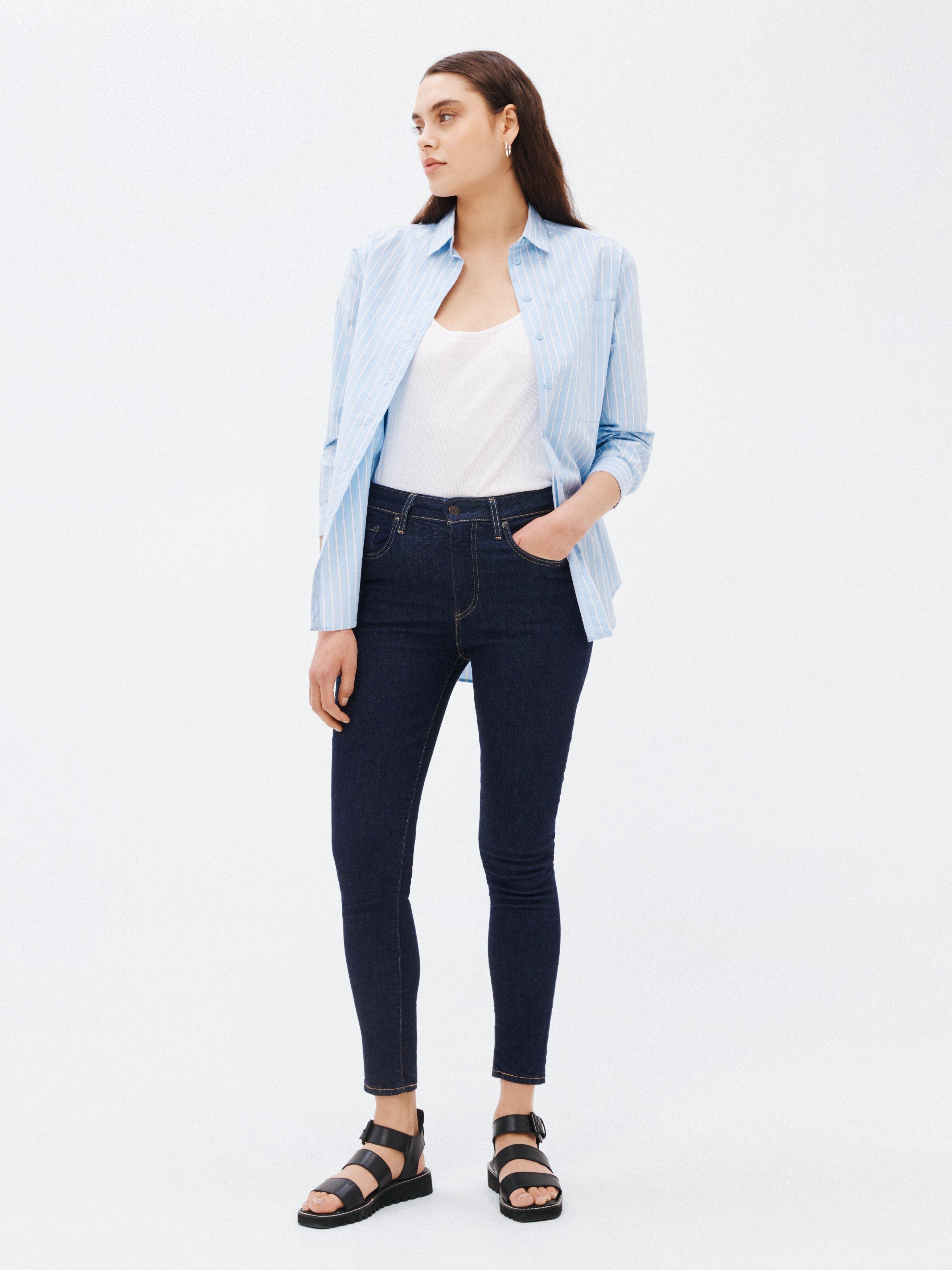 Like the 720 High-Rise Super Skinny, but a little less skinny at the leg. The 721 High-Waisted Skinny Jeans have the same form-flattering fit you love with a figure-hugging 10" rise in Levi's® Stellar Stretch. Thanks to excellent built-in recovery, they champion your curves and move with you without sagging or bagging everywhere and every wear.