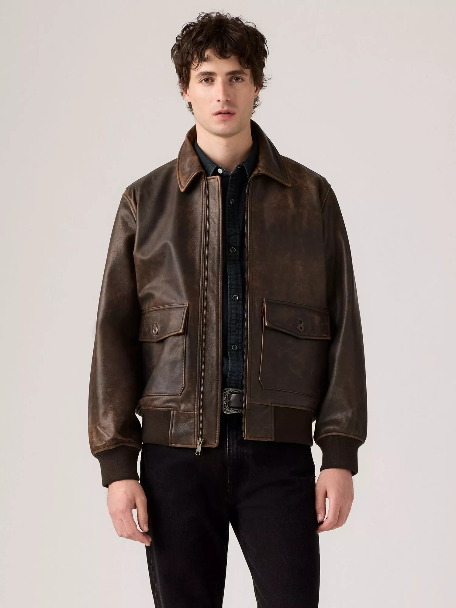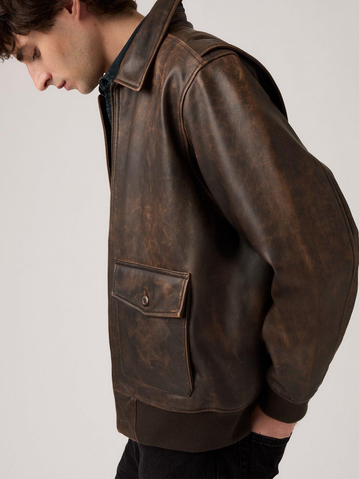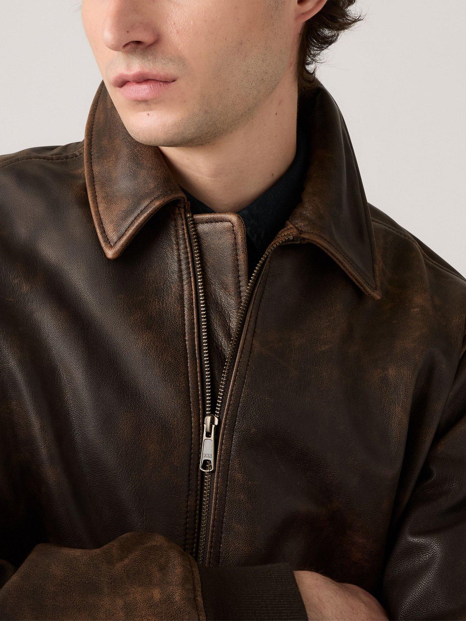The Clayton aviator jacket is a timeless style cut from premium leather with a classic collar and two convenient patch pockets.