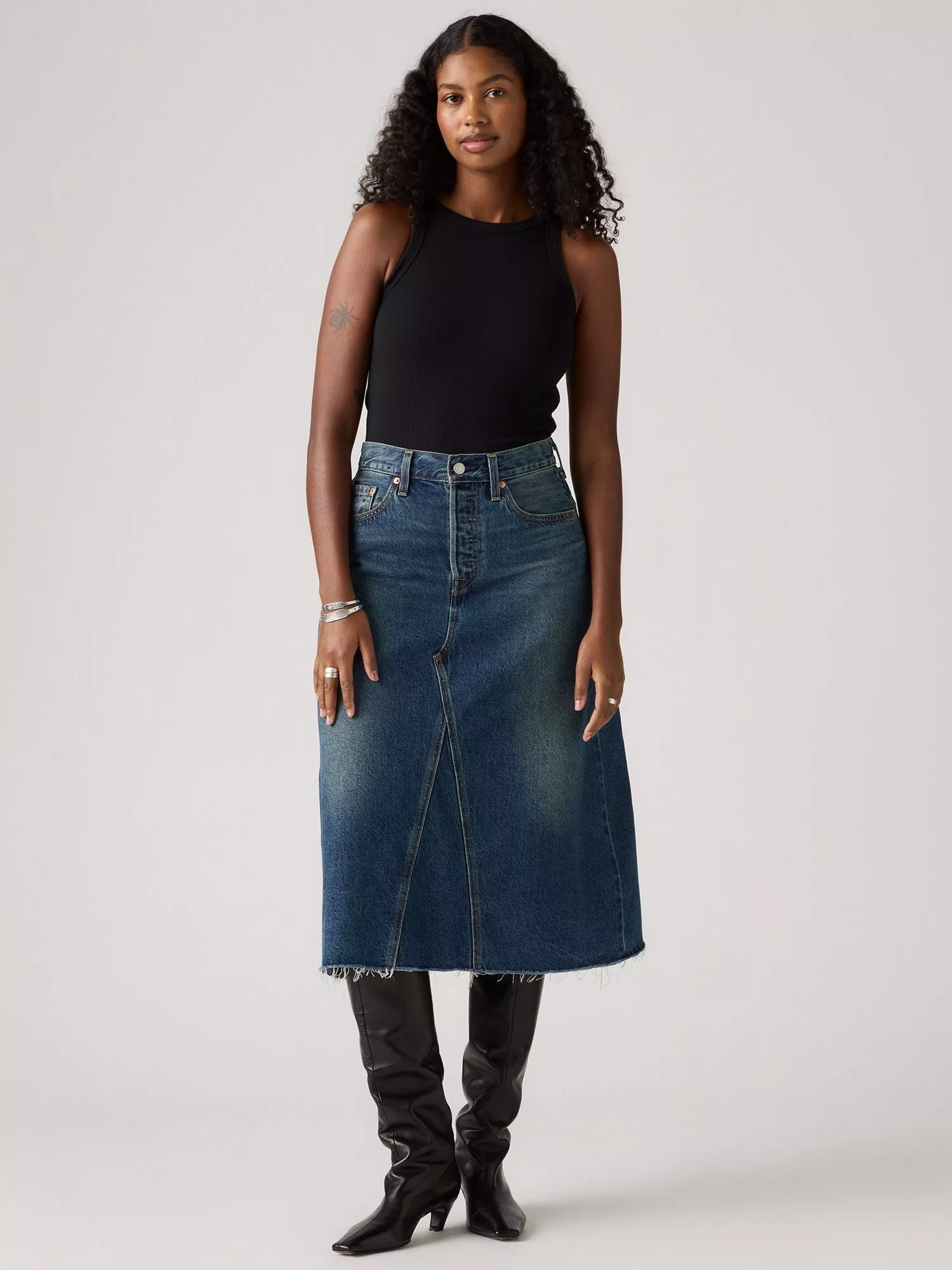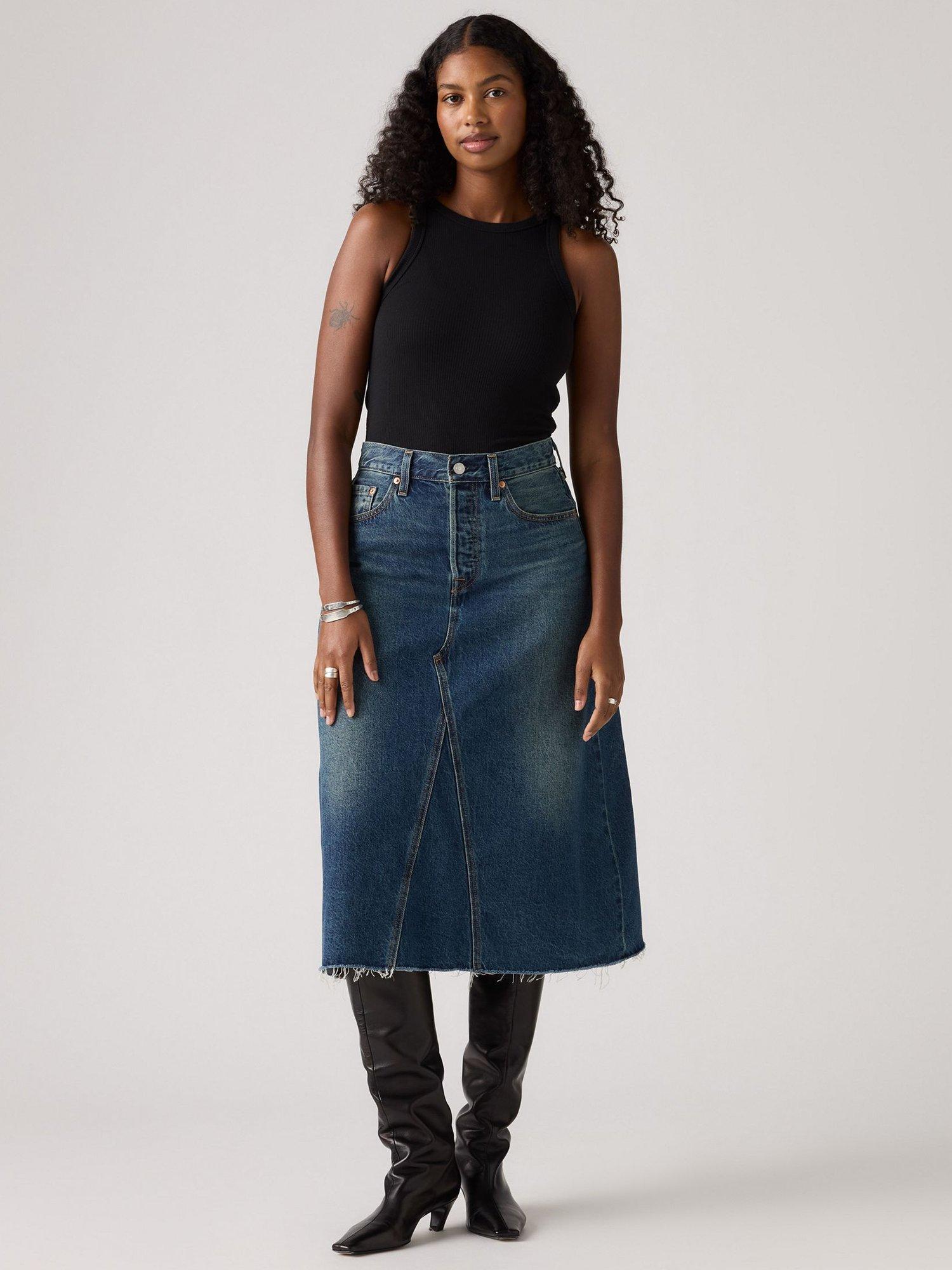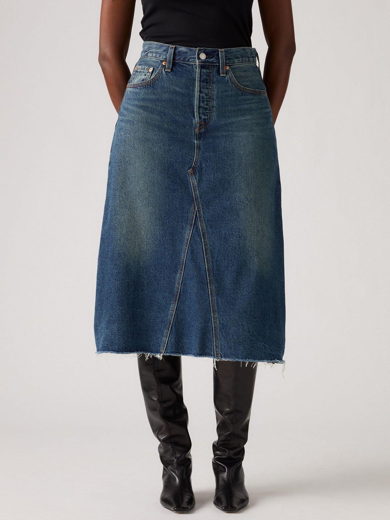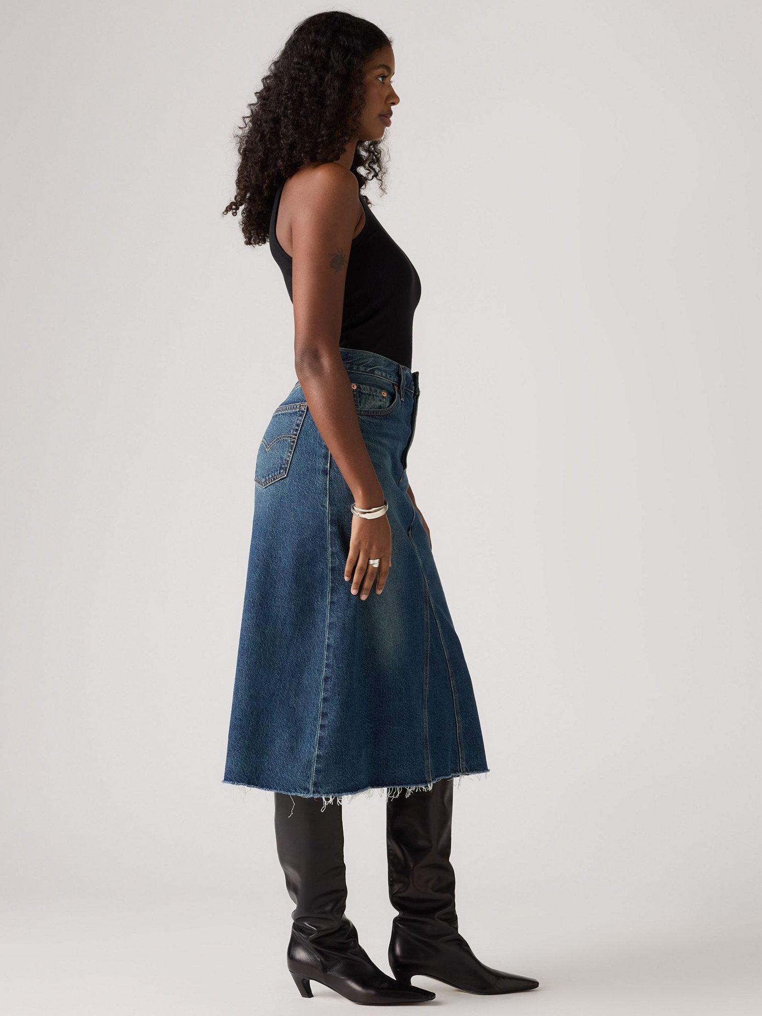 Swap out your everyday jeans for the High-Rise A-Line Decon Skirt. Levi's cut this one with an easy high rise, a flattering A-line midi silhouette, and deconstructed denim design.