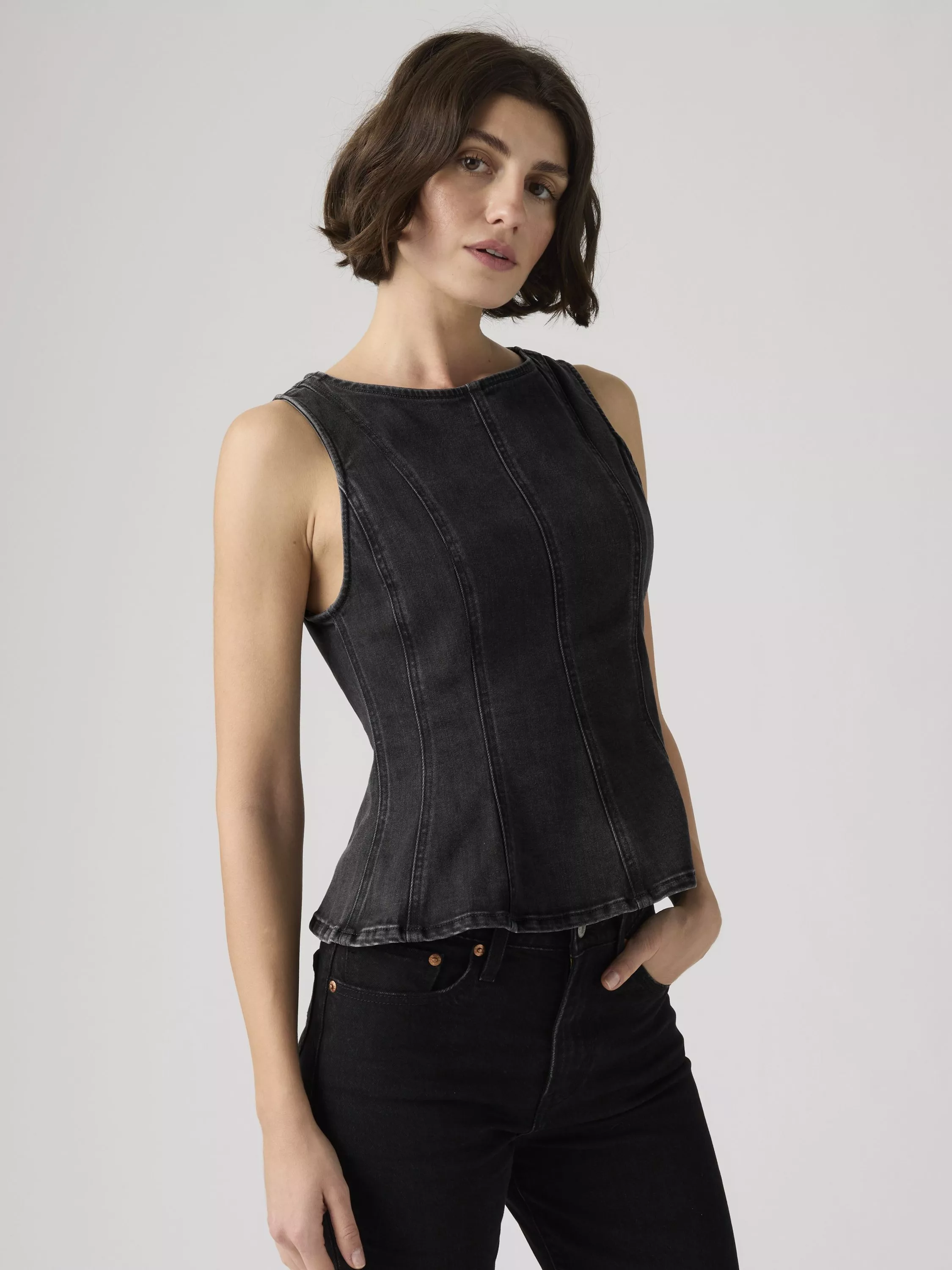 The Leighton Peplum Top just feels special. Levi's designed it with a high neckline, seam detailing and a flattering cut.