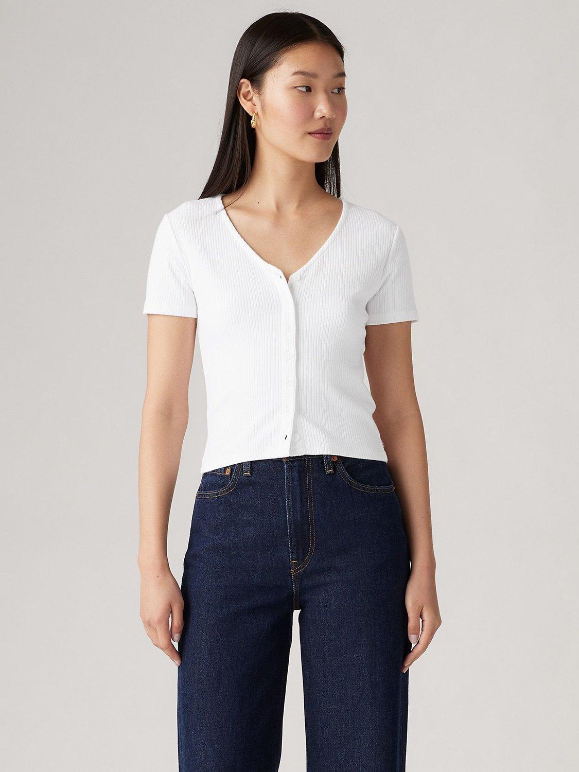 A solo piece or layering staple, this t-shirt by Levi's is plain for easy mixing and matching. Framed with a v-neckline and short sleeves, it is made from a soft cotton blend and is an everyday wardrobe essential.