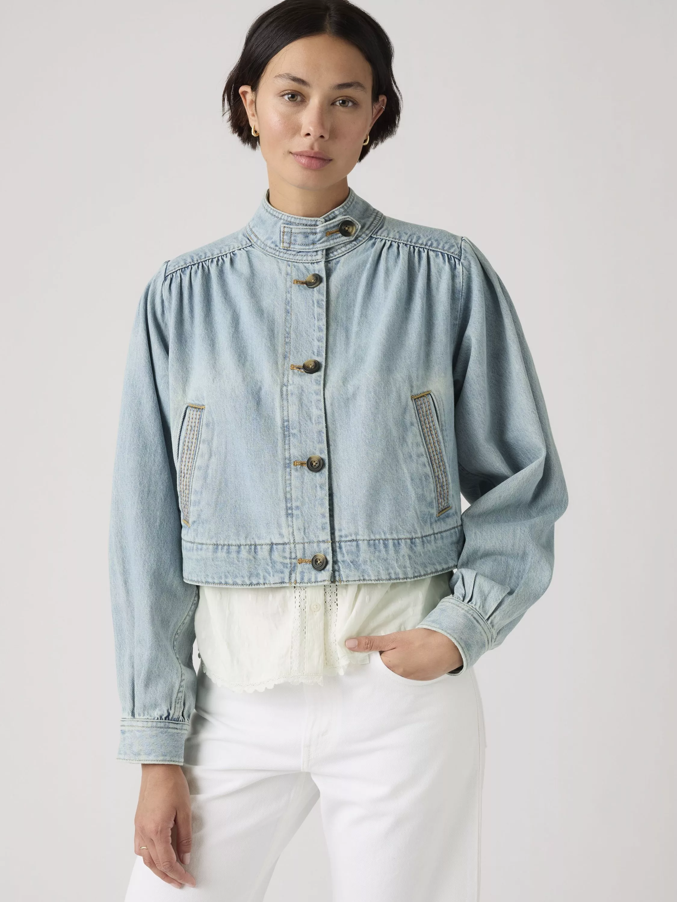 Practical. Polished. The Parker Pretty Short Coat is the layer you'll reach for on chilly days. Levi's designed it with a classic button-up front, a cropped, relaxed fit and two side pockets.