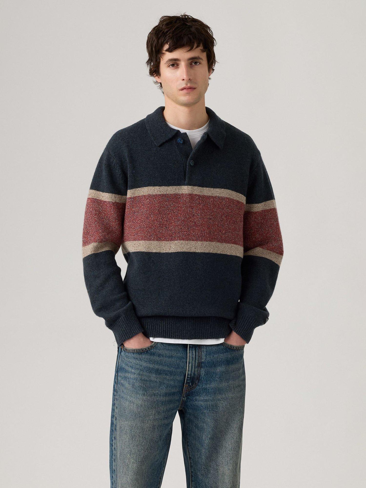 Set to serve you for cooler months, this collar neck jumper from Levi's is striped throughout and is blended with wool for luxurious warmth on wintry days.