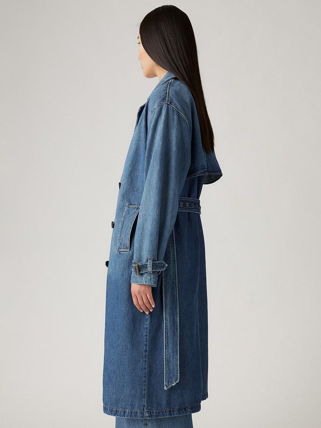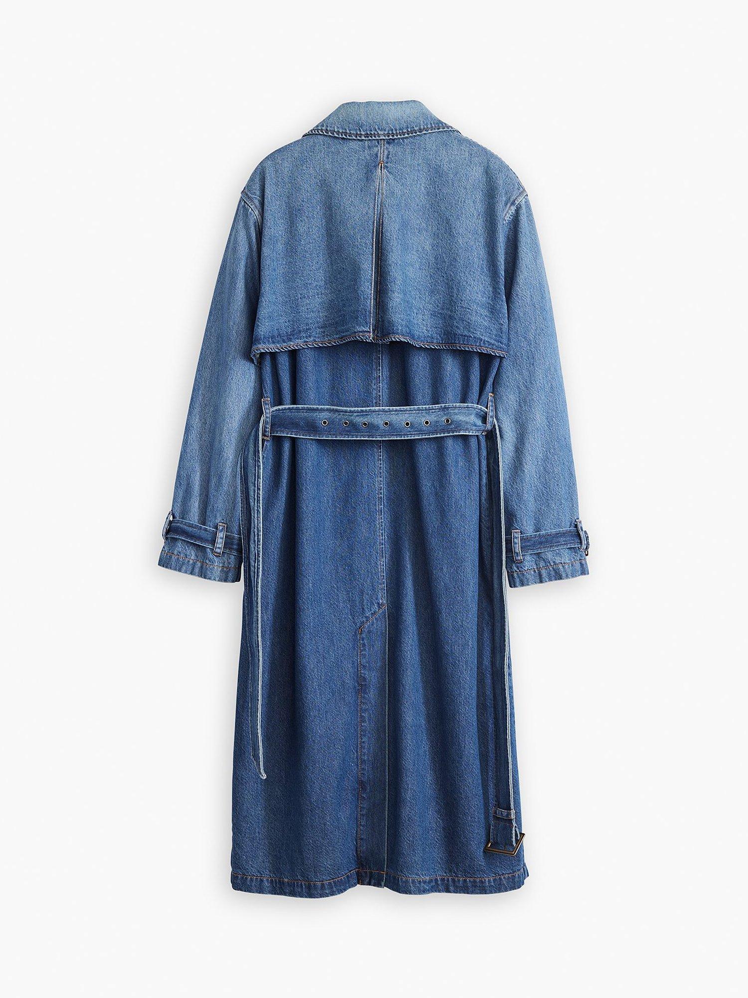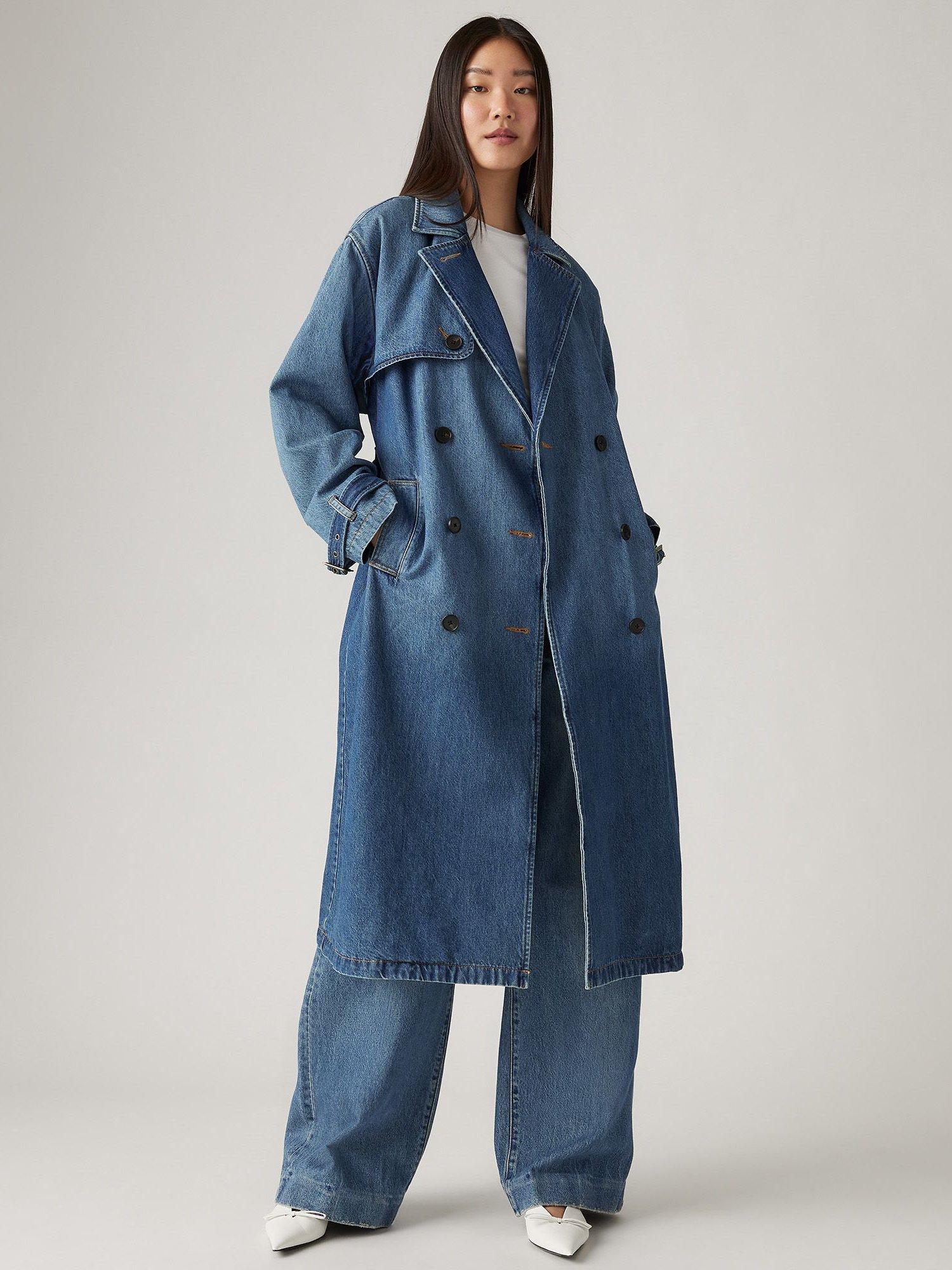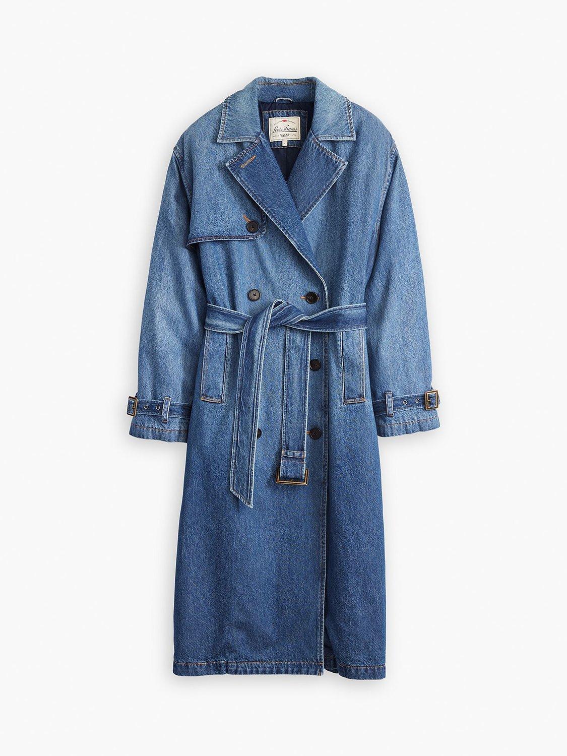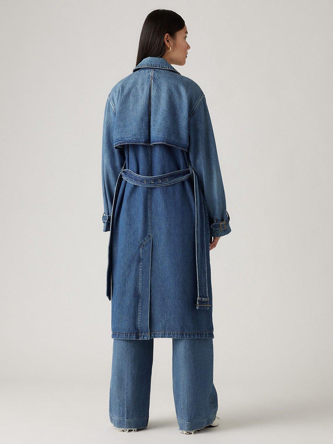 Unlike your usual denim, this trench by Levi's falls to a long silhouette with a self-tie fabric belt detail.