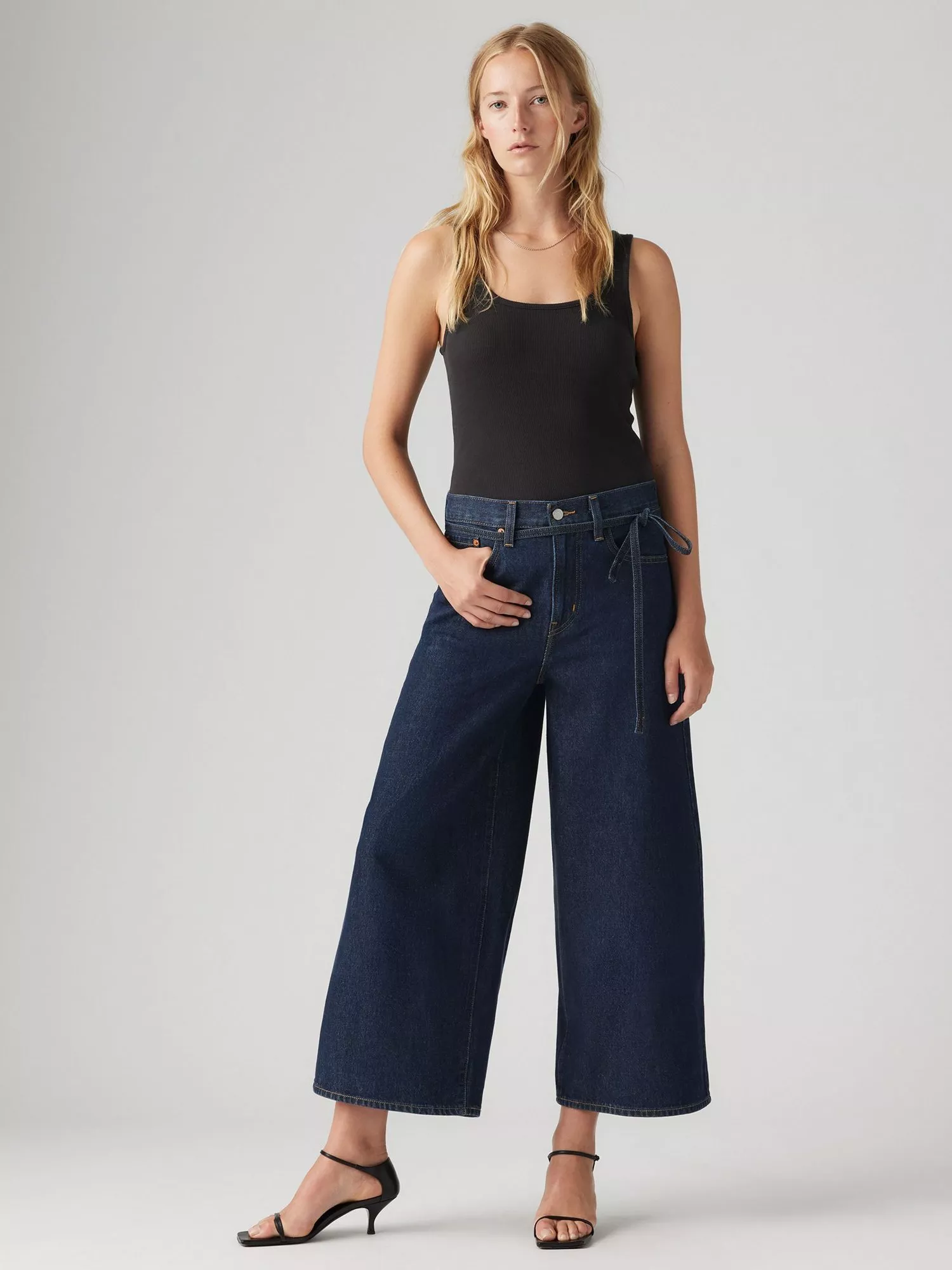 Go big — the XL Culotte jeans take it to the max. These easy, baggy culottes feature a wider, straight leg and a tie belt.