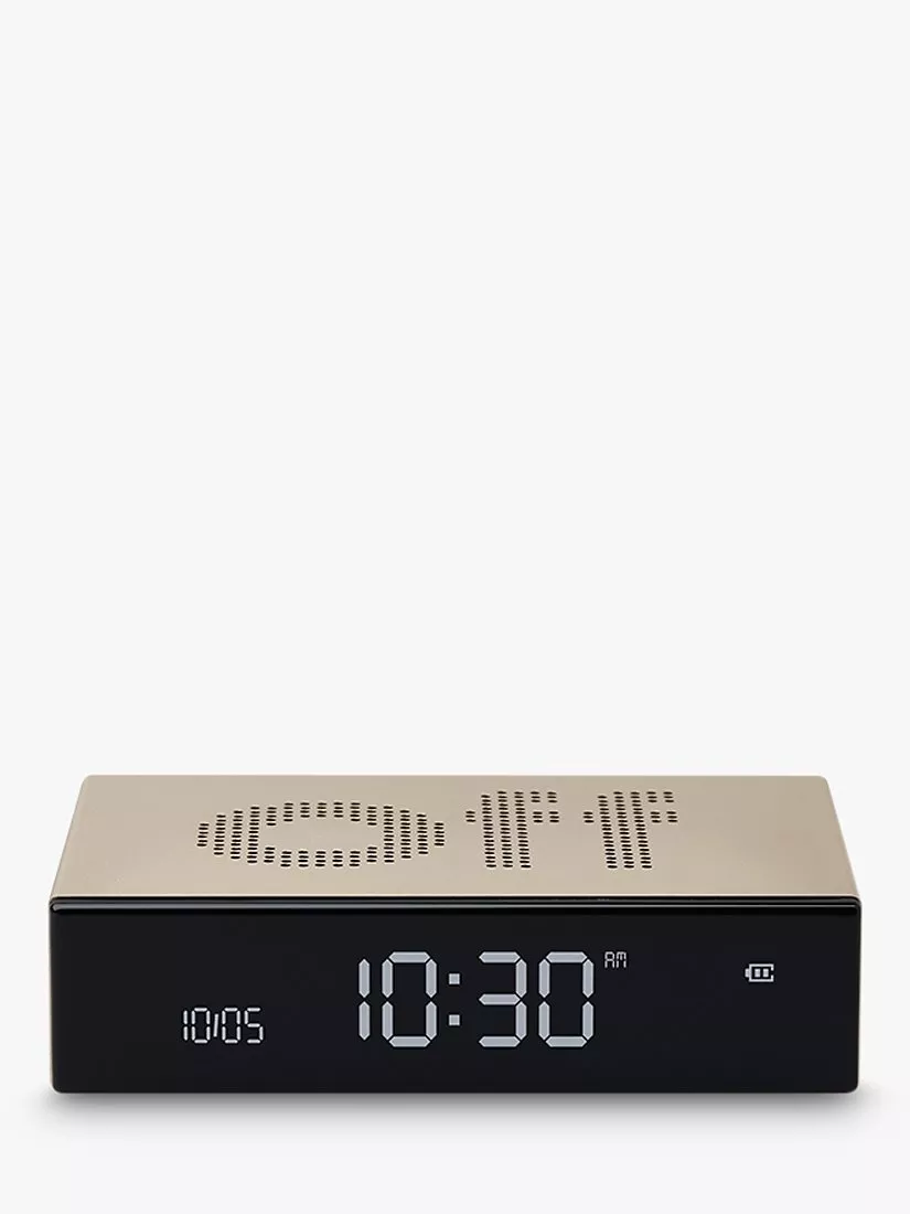 A compact and premium design in metal, this contemporary Flip alarm clock from Lexon is ideal for a bedside table and has a unique silencing function. Simply flip it over to turn the alarm off, so there's no more searching for the off switch in the dark.