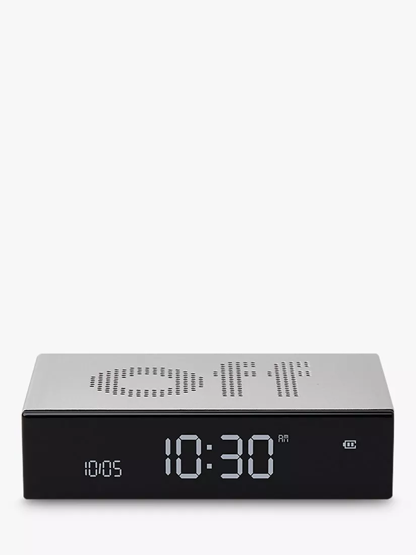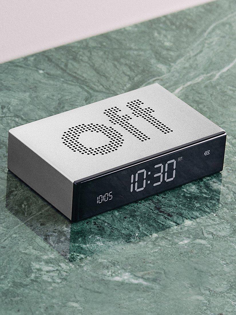 A compact and premium design in metal, this contemporary Flip alarm clock from Lexon is ideal for a bedside table and has a unique silencing function. Simply flip it over to turn the alarm off, so there's no more searching for the off switch in the dark.