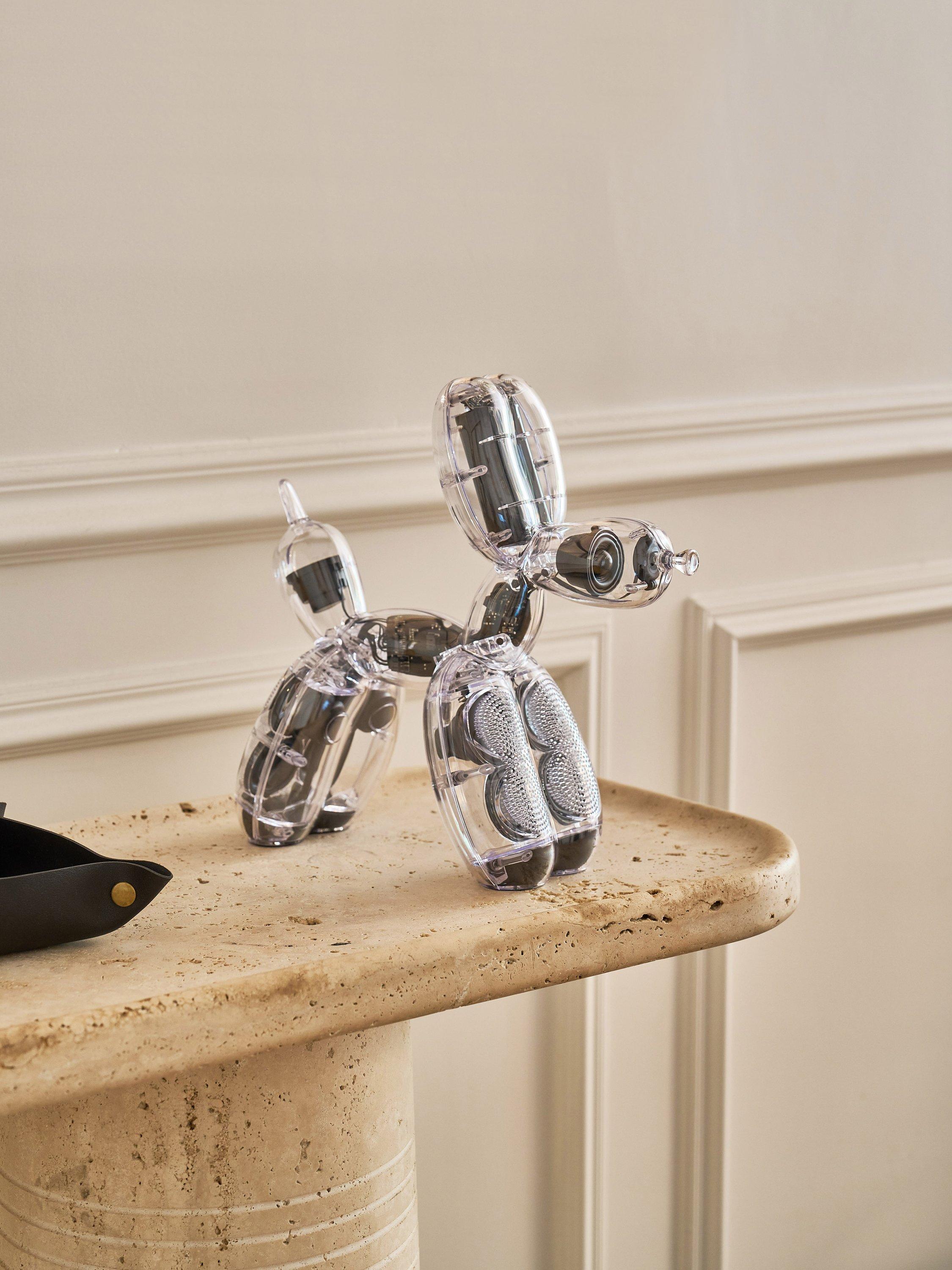 The Balloon Dog Lamp by Lexon brings a playful twist to lighting. With 200 lumens brightness, 9 colors, 9 animations, and Bluetooth® Easy Sync to connect multiple lamps, it creates a vibrant and customizable atmosphere.
