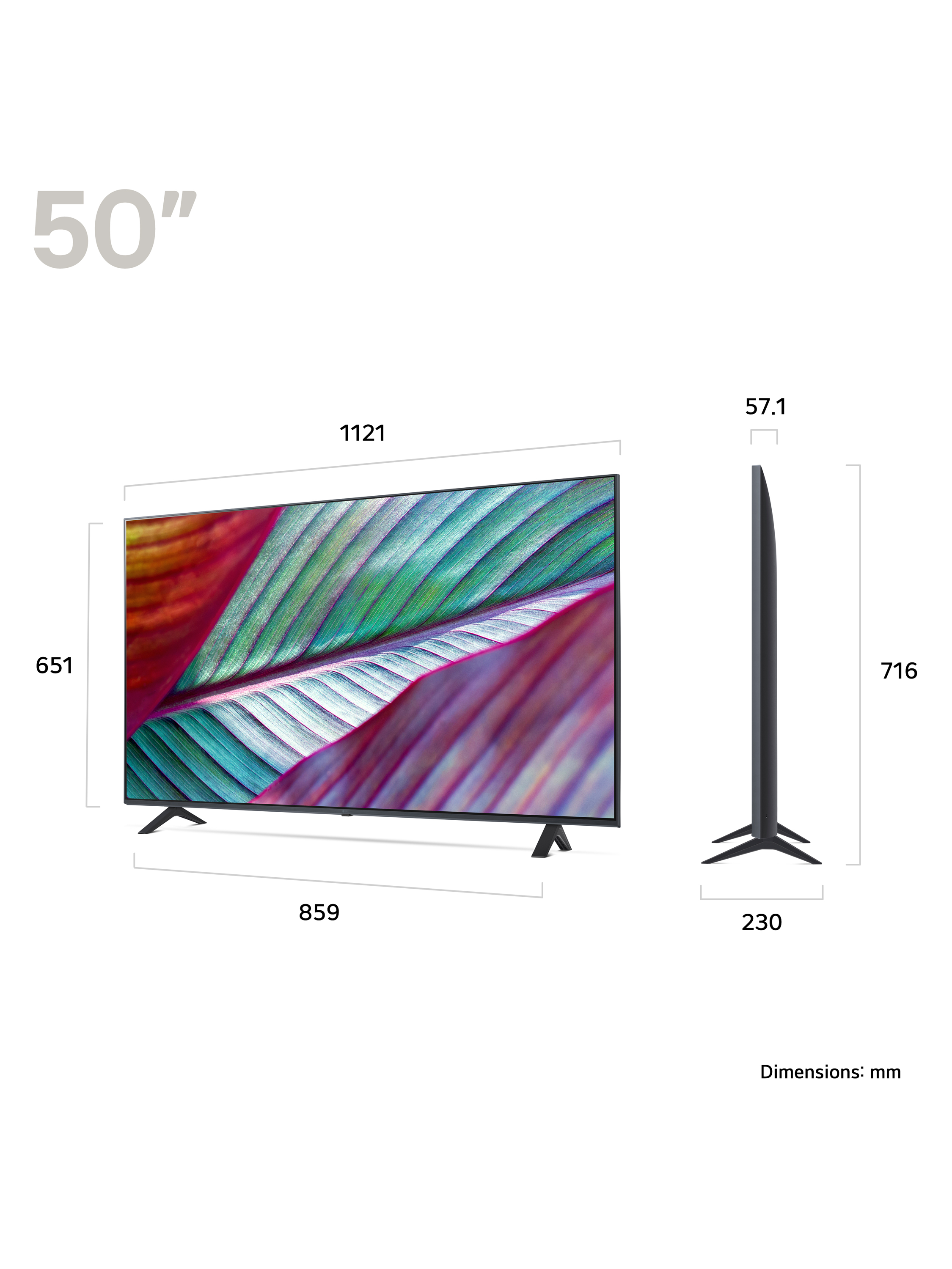 - Dimensions with stand