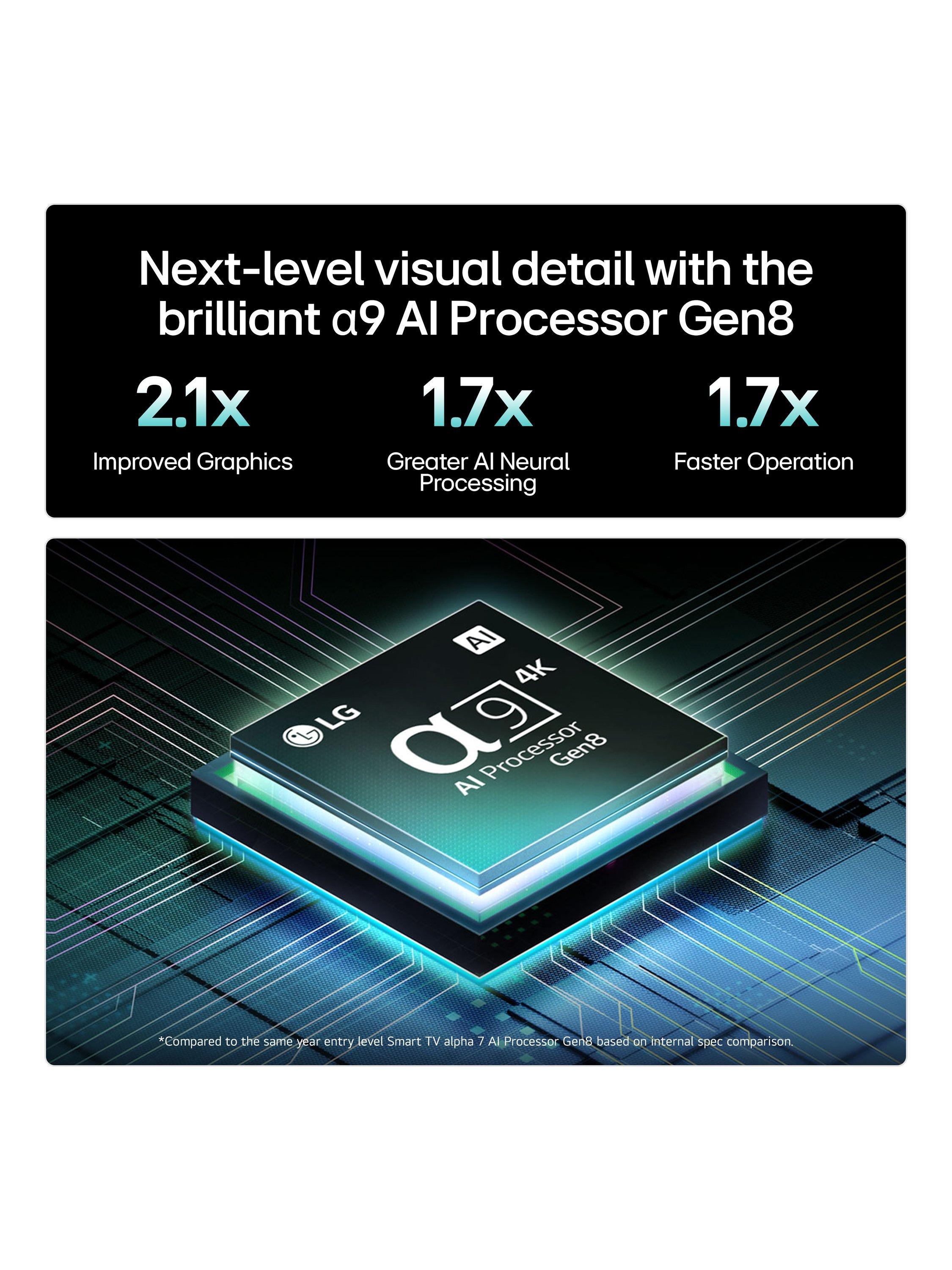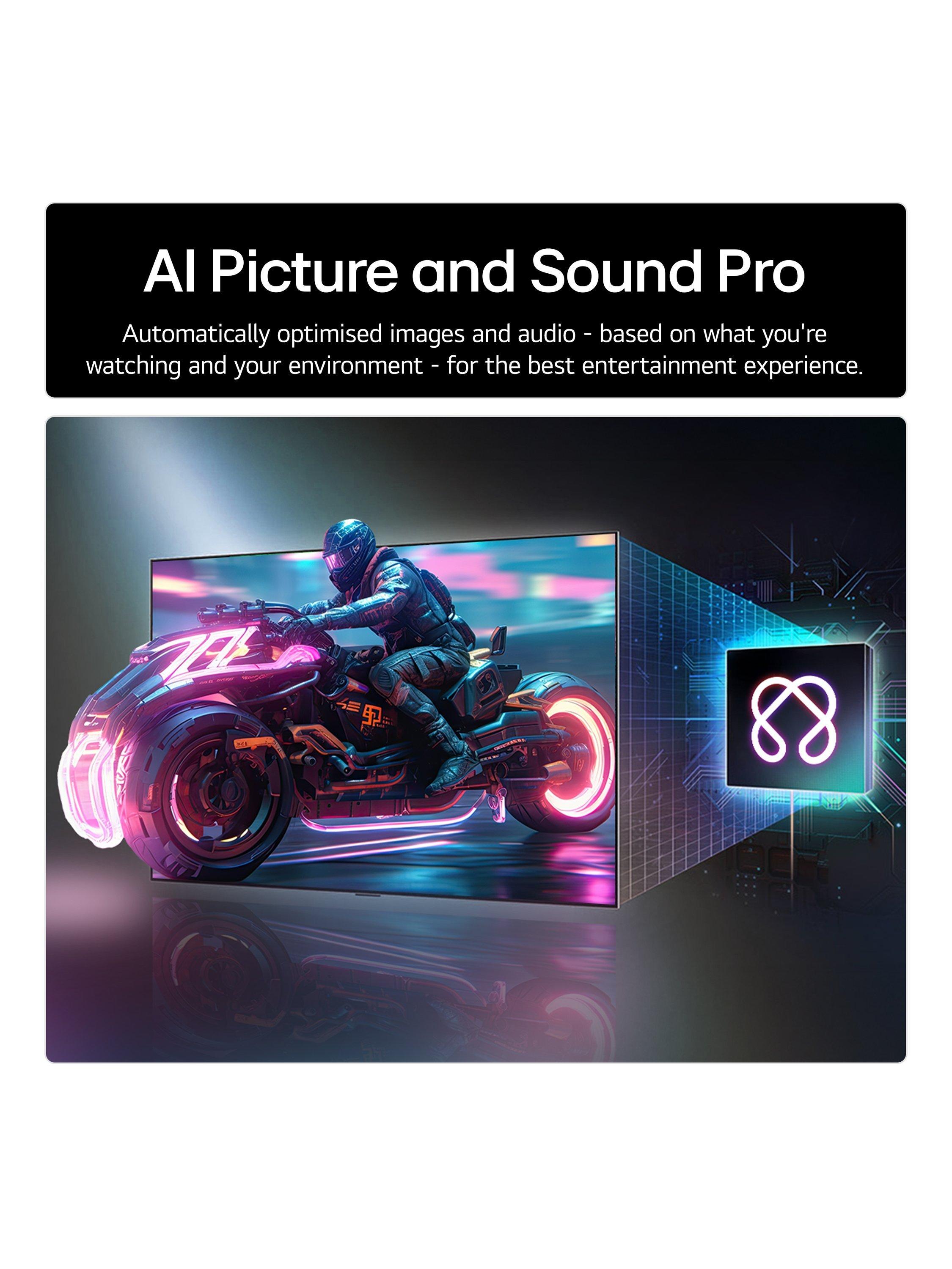 This LG TV features webOS, LG's smart platform which hosts a huge variety of the top streaming services, while making browsing and searching for what to watch completely hassle-free. It opens up a world of information and assistance through a variety of AI-driven services. These include the AI Chatbot - which can help you to change the image or sound to your liking simply by asking, Voice ID – which can recognise different users and provide personalised recommendations, and much more.