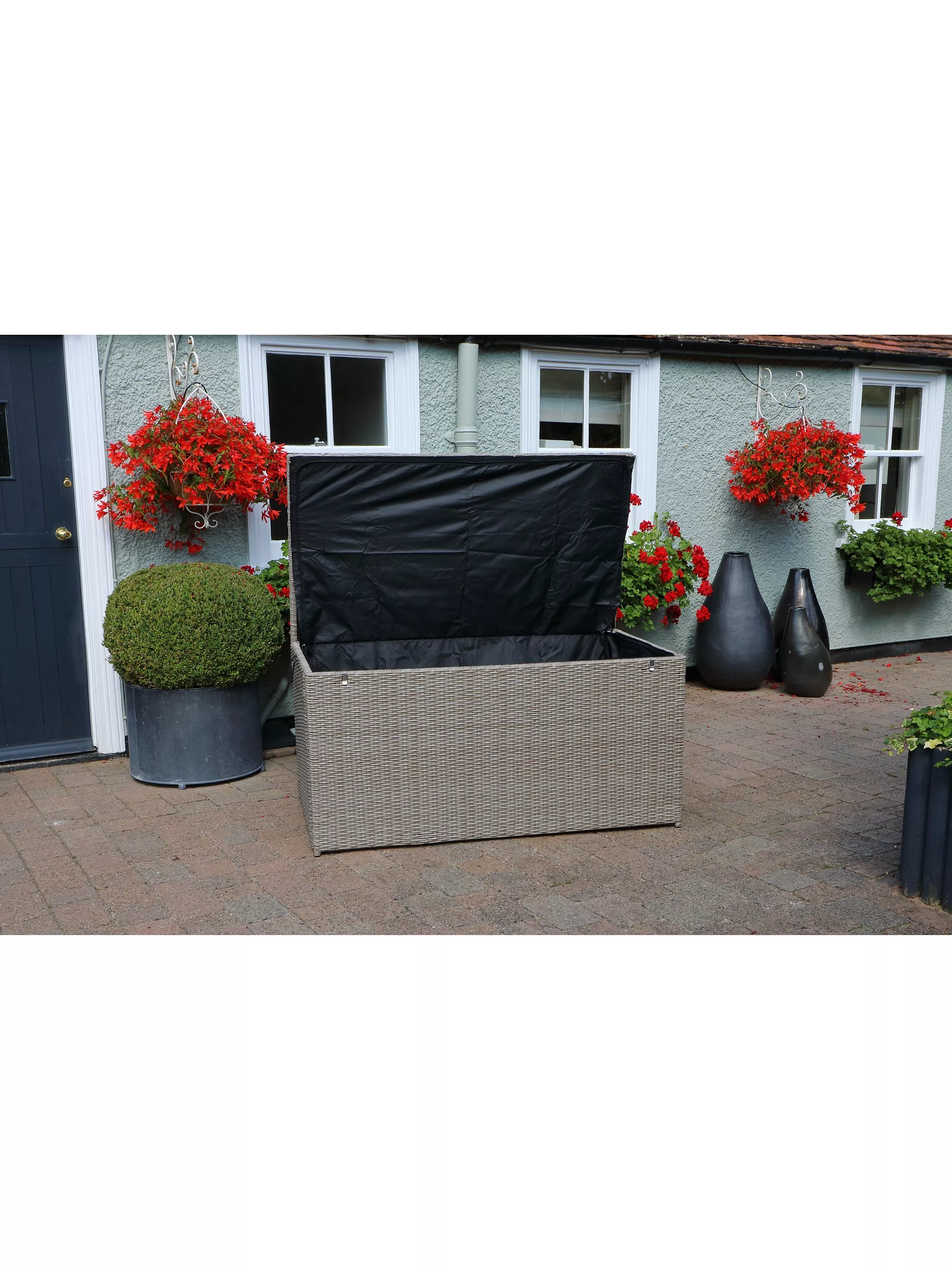This storage box has a water-resistant zipped inner bag and a hinged lid with a solid insert to help protect the box from rainwater. There's plenty of room for your cushions to store them during inclement weather over the summer months.