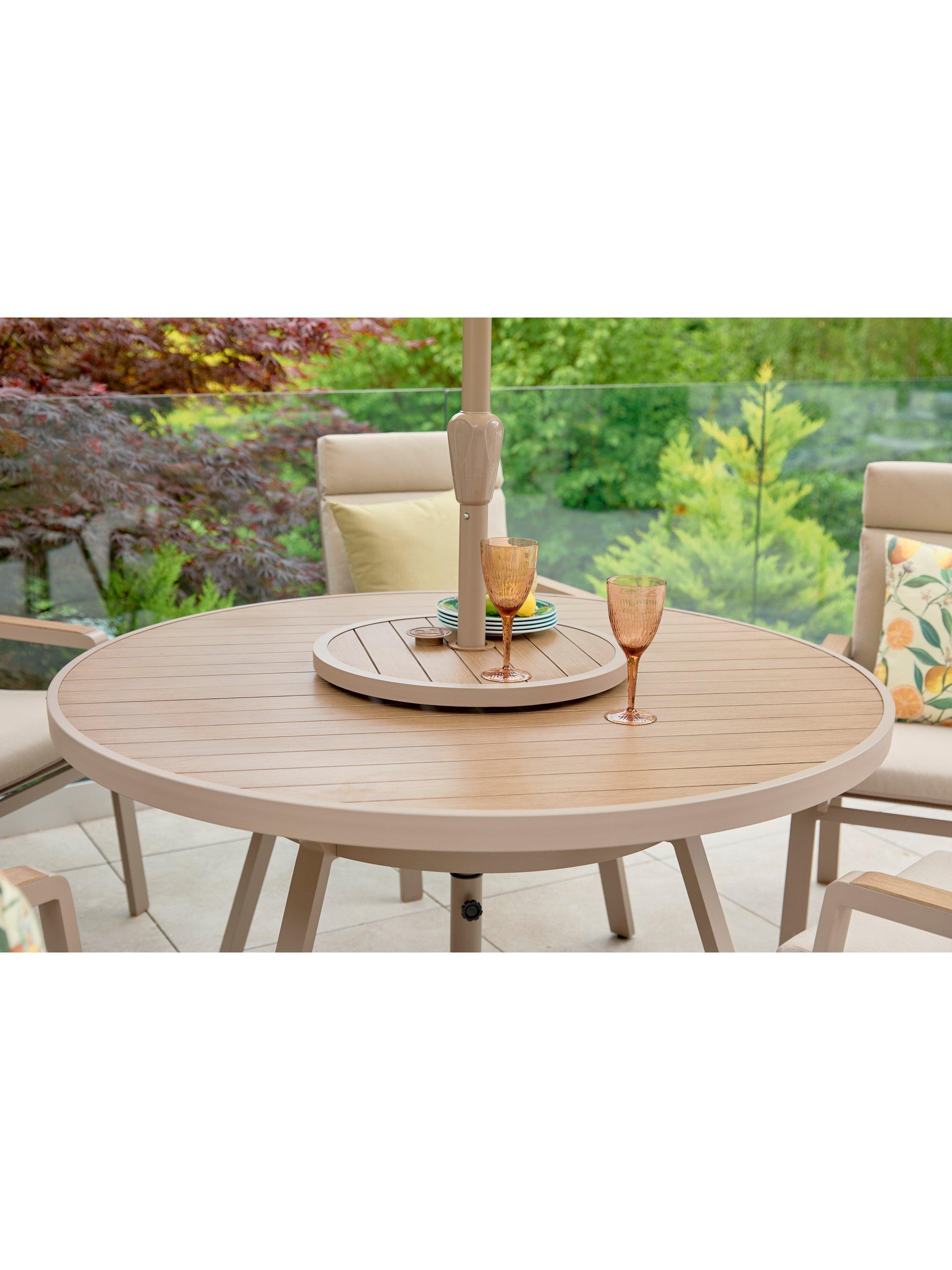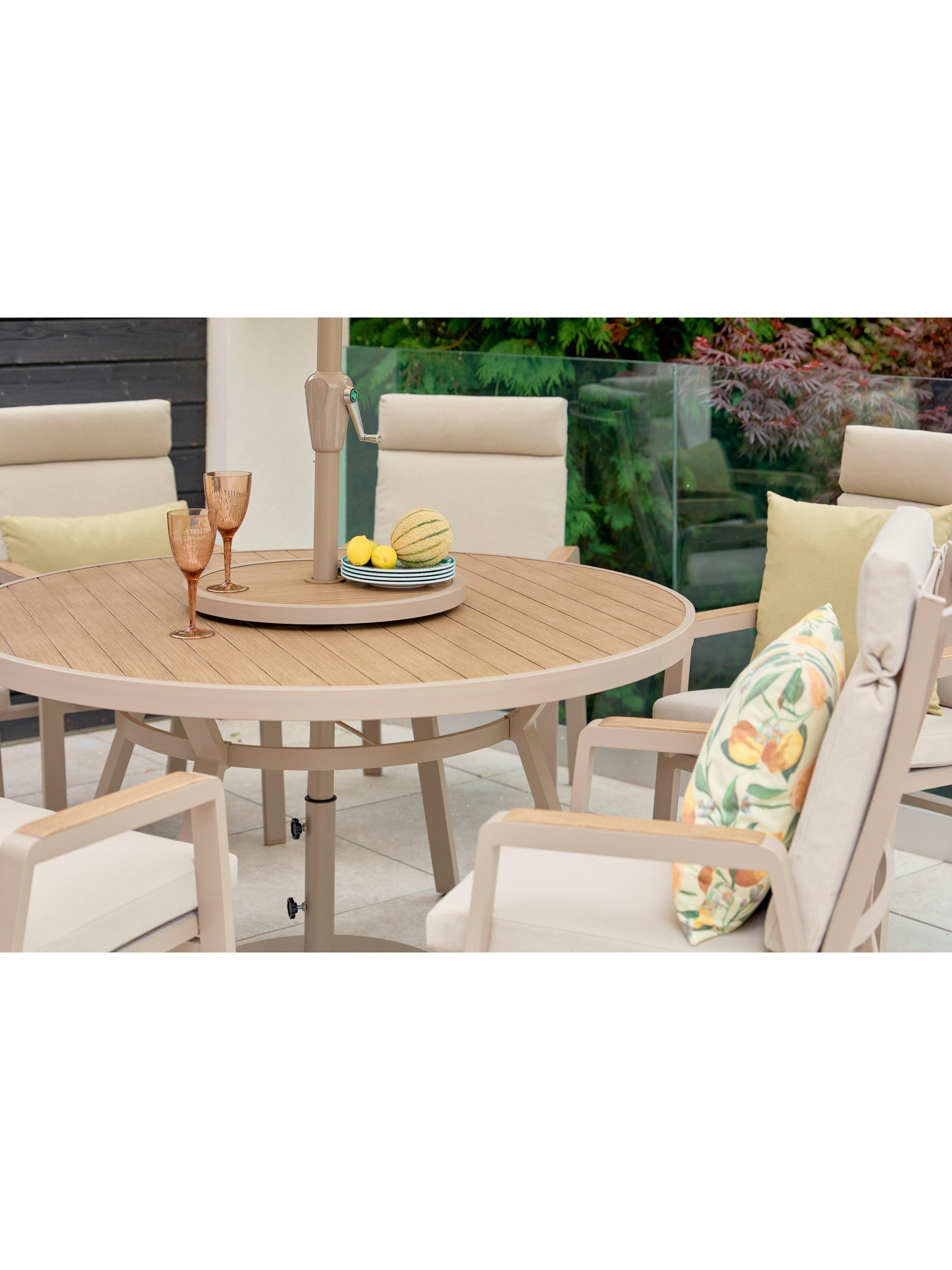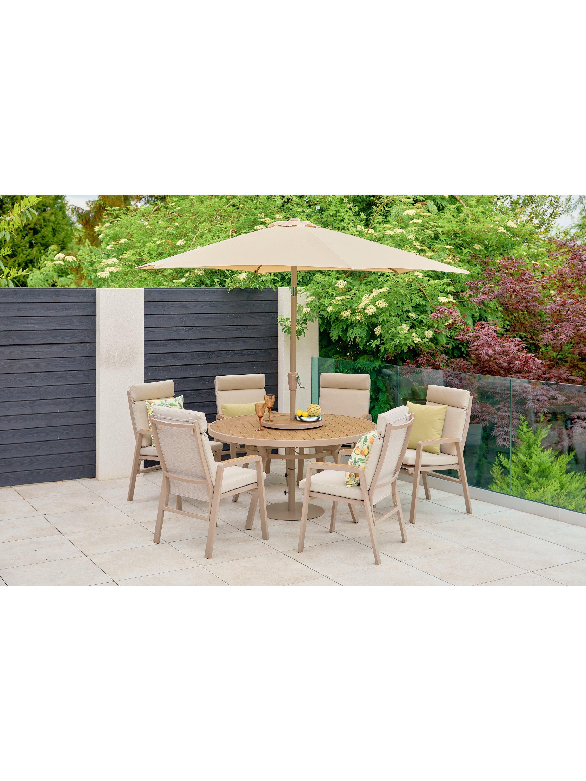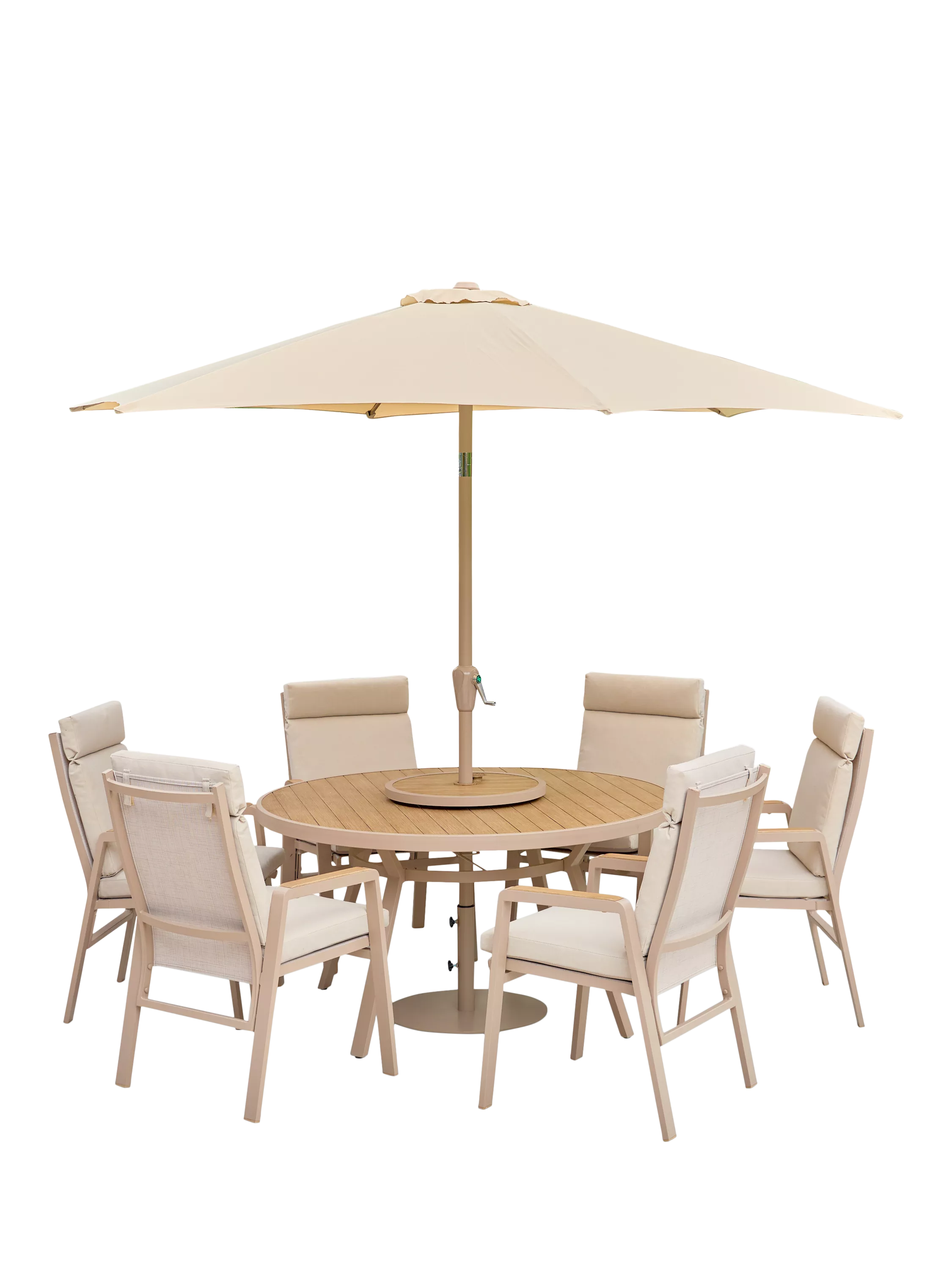 LG OutdoorSorrento 6-Seater Round Garden Dining Table & Chairs Set with Parasol & Lazy Susan