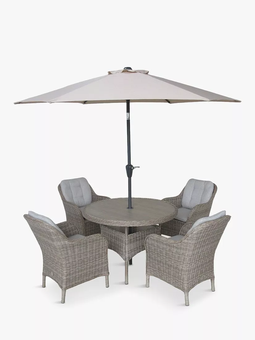 LG OutdoorSt Tropez 4-Seater Round Garden Dining Table & Chairs Set with Parasol