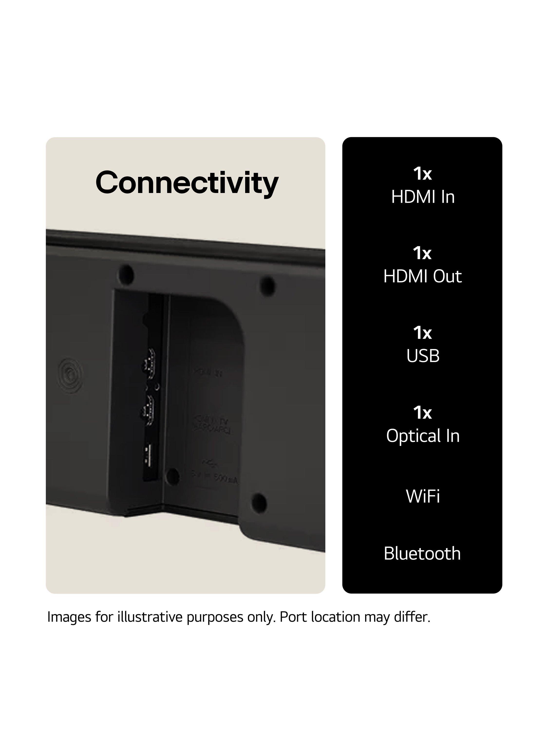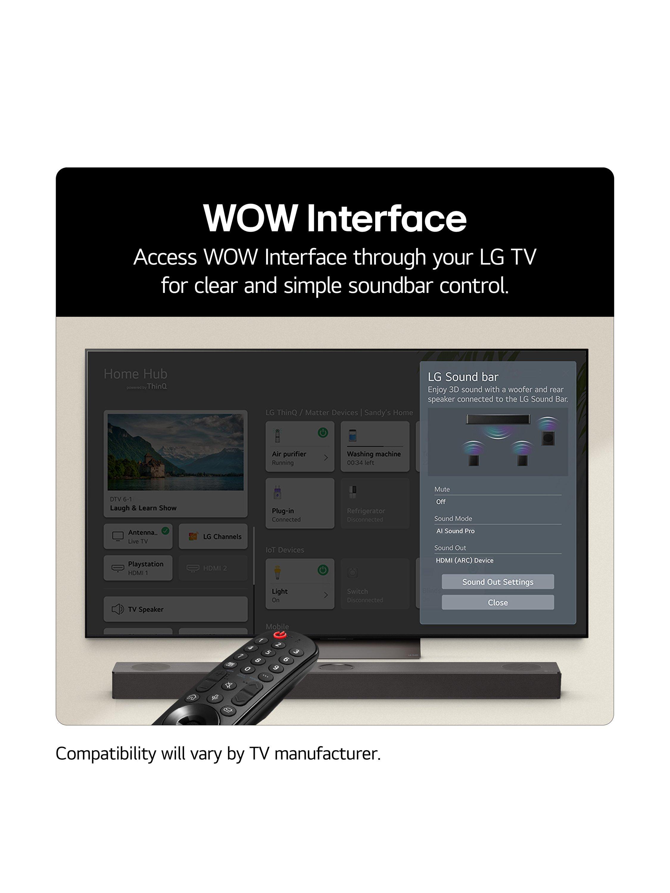 Enjoy an enhanced experience when connecting to compatible LG TVs. WOW Orchestra offers a greater experience by using the TV speakers with the Soundbar at the same time. WOW Interface provides ease of use between your LG TV and LG Soundbar – easily control the Soundbar’s sound modes through the TV’s remote and on-screen menus.