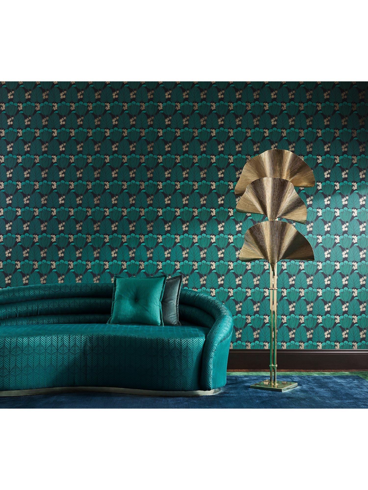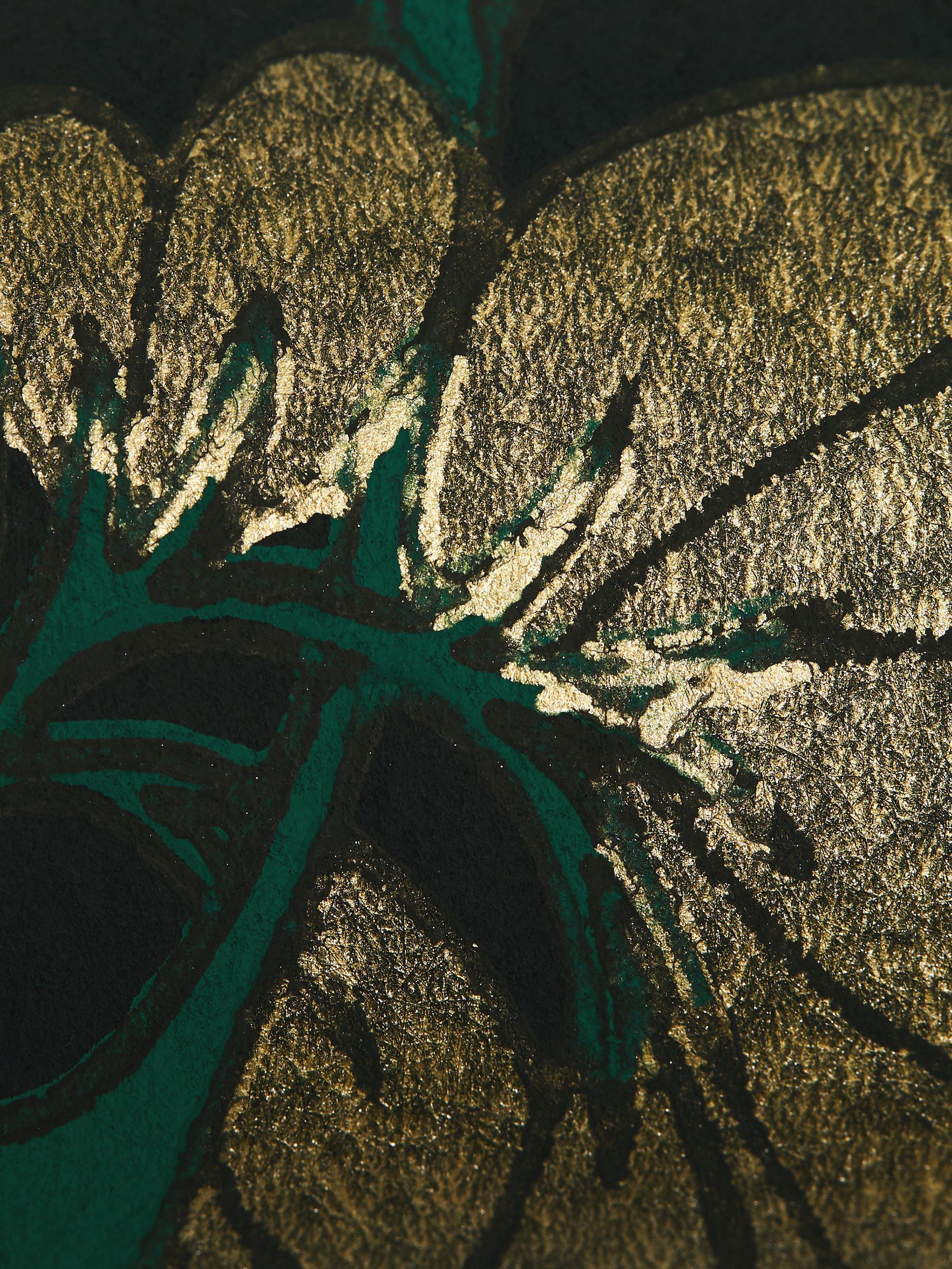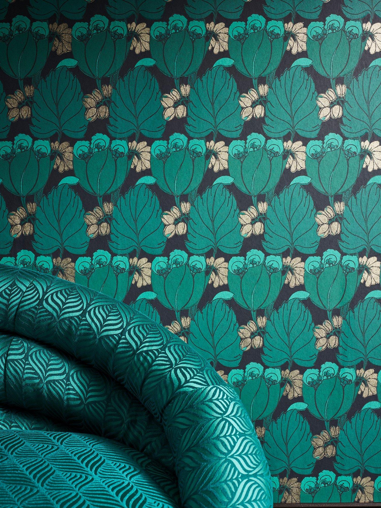 Rich chalky grounds form the background for the boldly coloured tulip motifs, in beautiful matte and metallic pigments. Carefully selected to bring this design to life, the surface print technique allows rich reticulation of surface pigment, emulating traditional block printing effects.