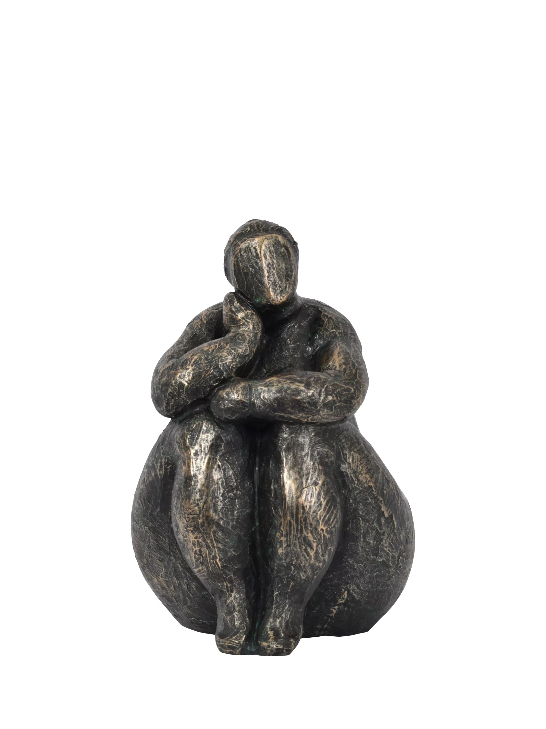 The Athena sculpture is named after the goddess of wisdom and courage. She sits crouched, deep in thought. This beautiful decorative sculpture celebrates the feminine form and is made in resin with Libra Interiors' signature antique bronze finish. While curvy in shape, the Athena sculpture has a flat base, and will be right at home displayed on a shelf or mantelpiece.