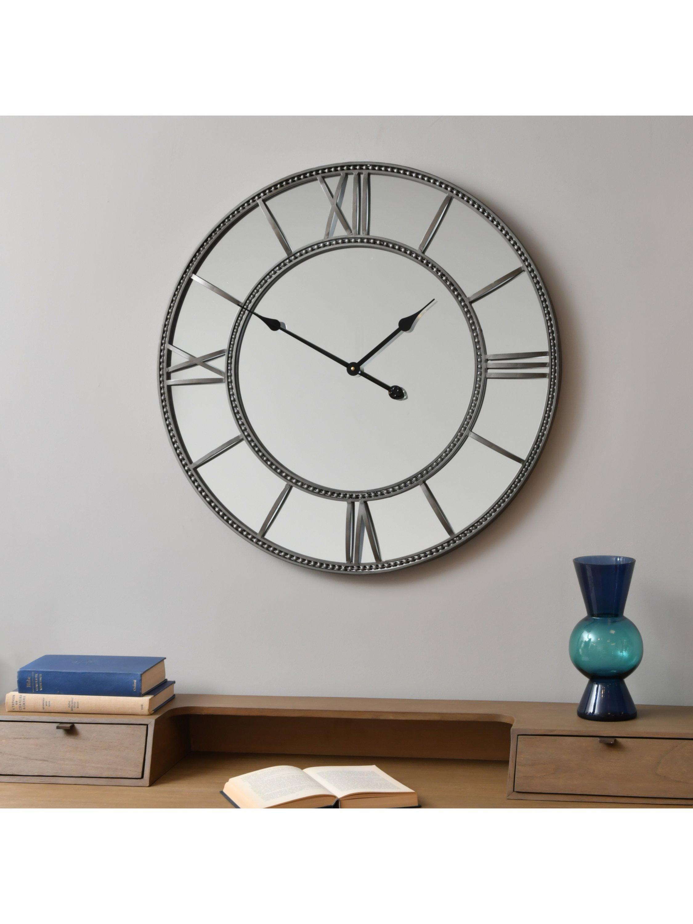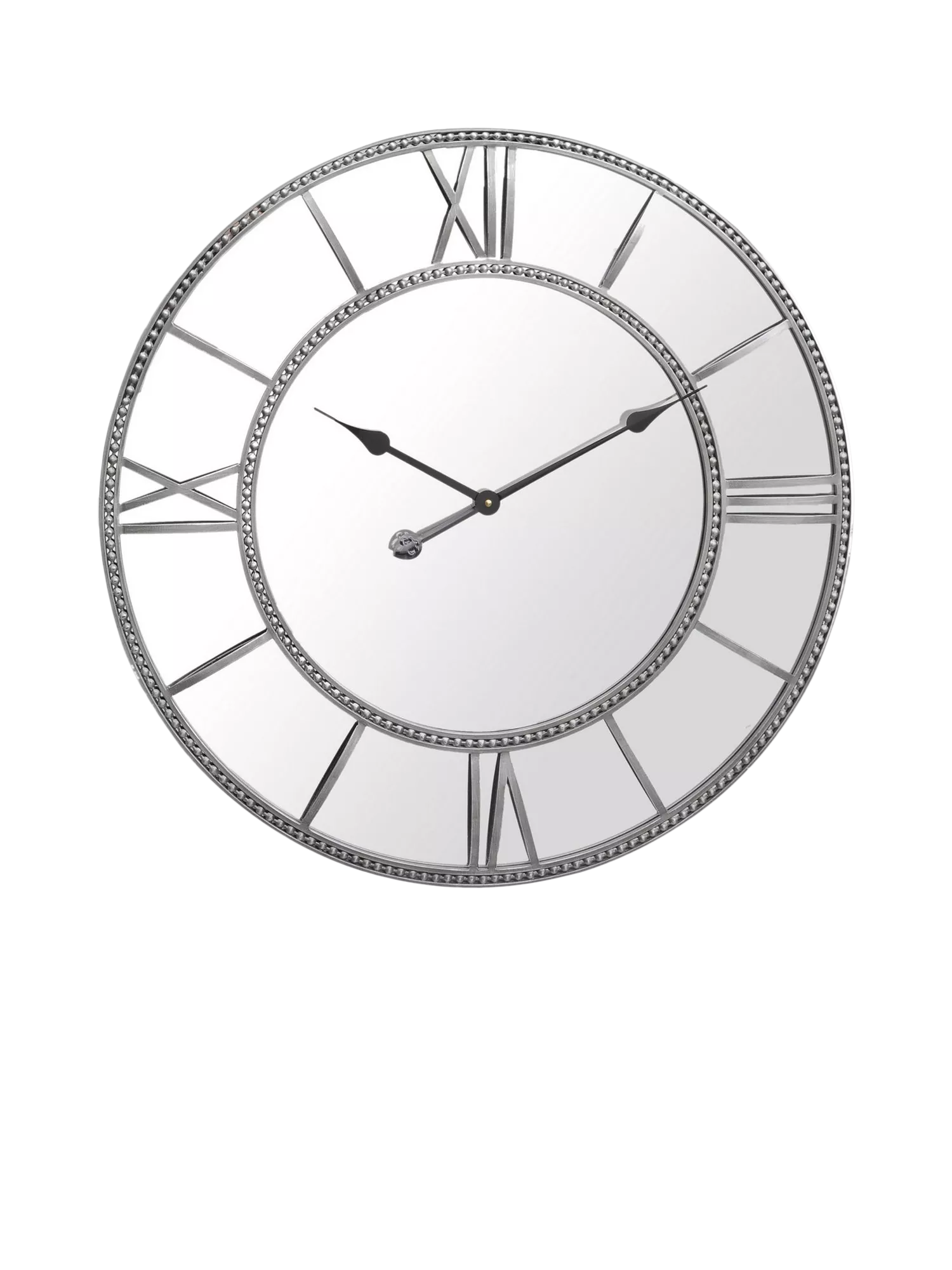 Libra InteriorsBeaded Mirrored Round Wall Clock, 70cm, Silver/Grey