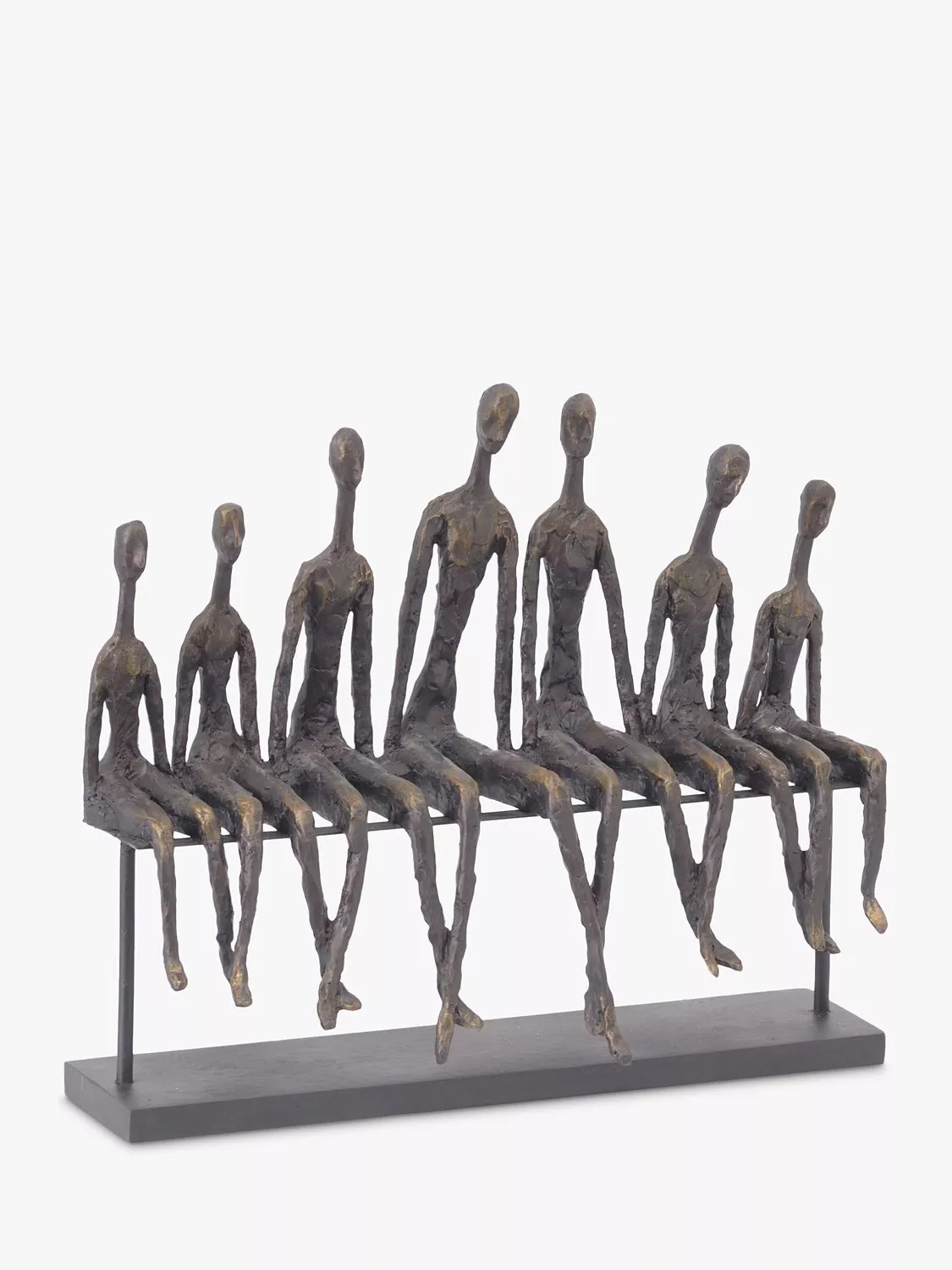 A Friendship Bench contemporary sculpture from Libra Interiors of seven individuals peacefully sitting side-by-side.