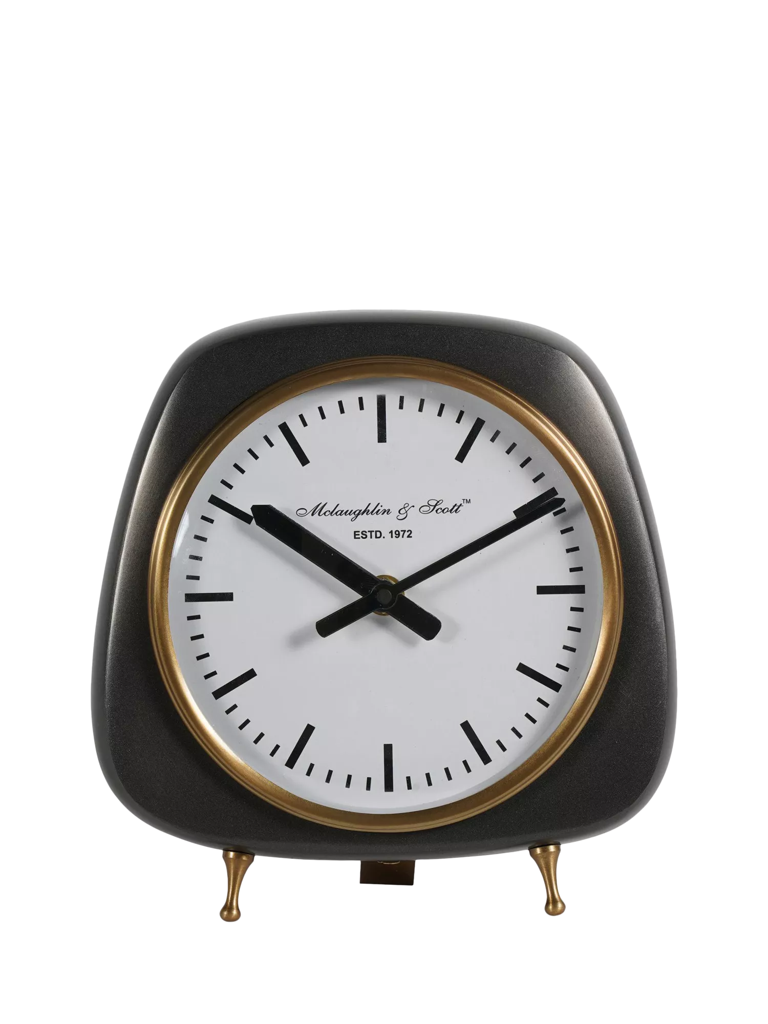 Stylish, retro mantel clock featuring a metal case with brass highlights and a smart cream face. The quartz mechanism produces a gentle ticking sound, adding to its nostalgic charm.