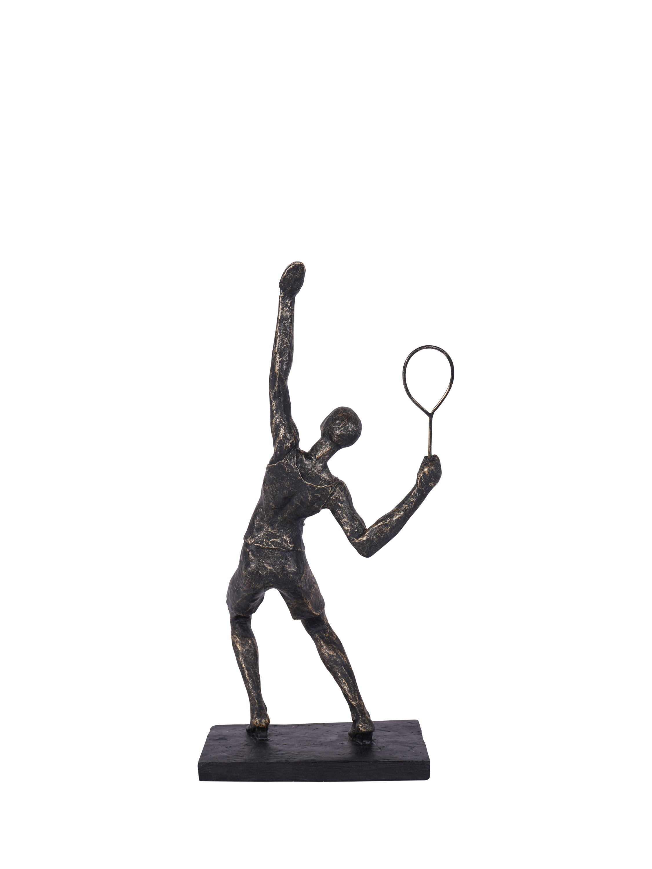 Racket Player Sculpture from Libra Interior, an epitome of athleticism and elegance. Crafted in resin with a hand finish, it freezes a moment in time with the racket player poised to take a powerful serve.