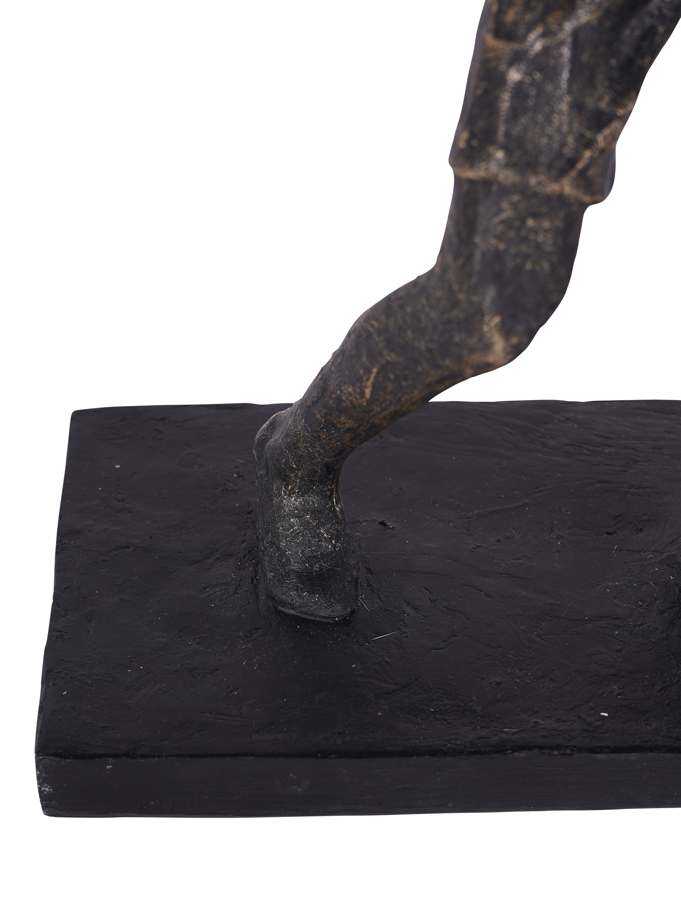 The rich bronze finish adds timeless sophistication, making it a captivating focal point. Whether on a mantel, shelf or tabletop, it exudes movement and energy, inviting admiration from every angle.
