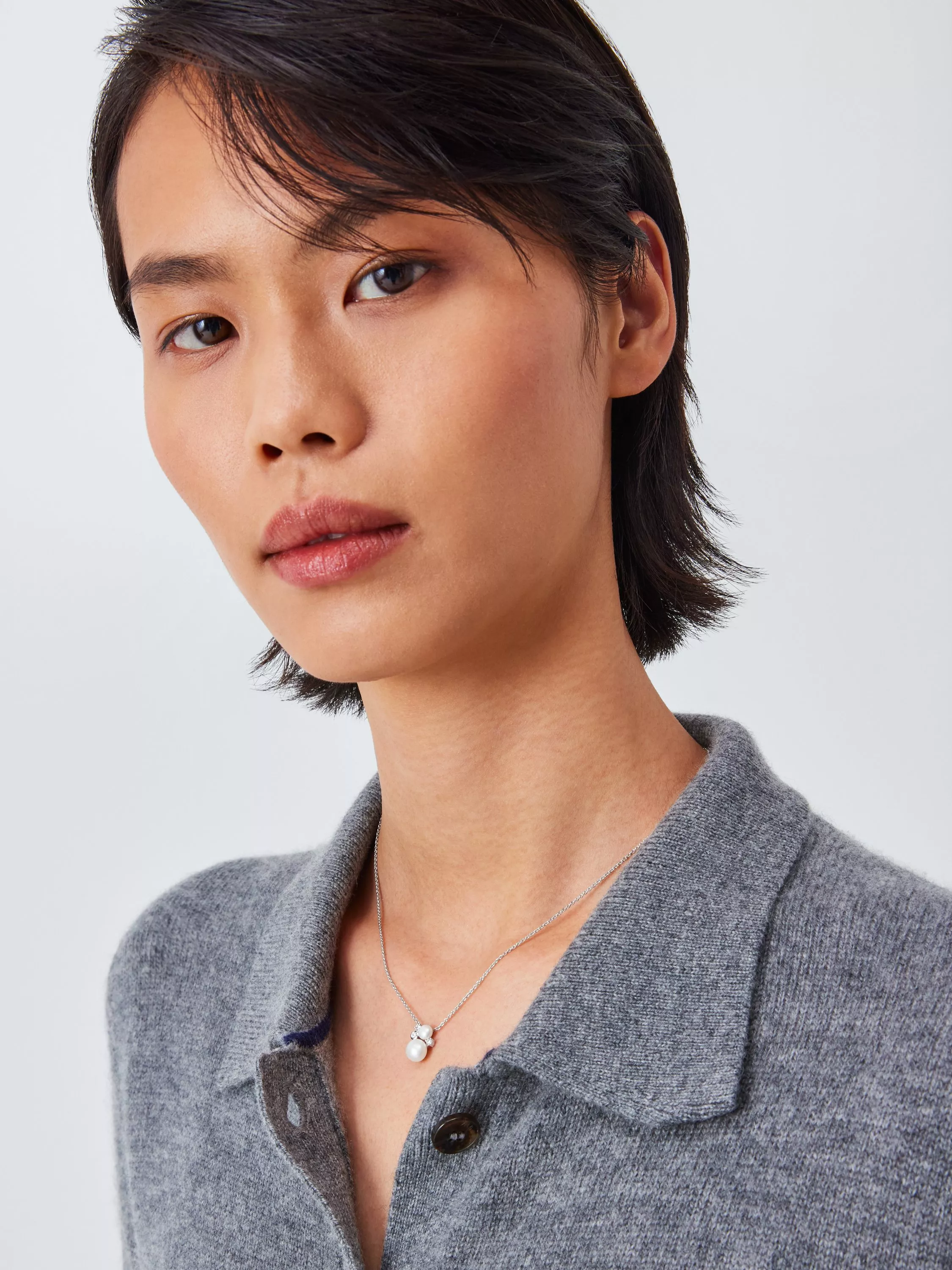 LidoCubic Zirconia Double Pearl Pendant, Silver