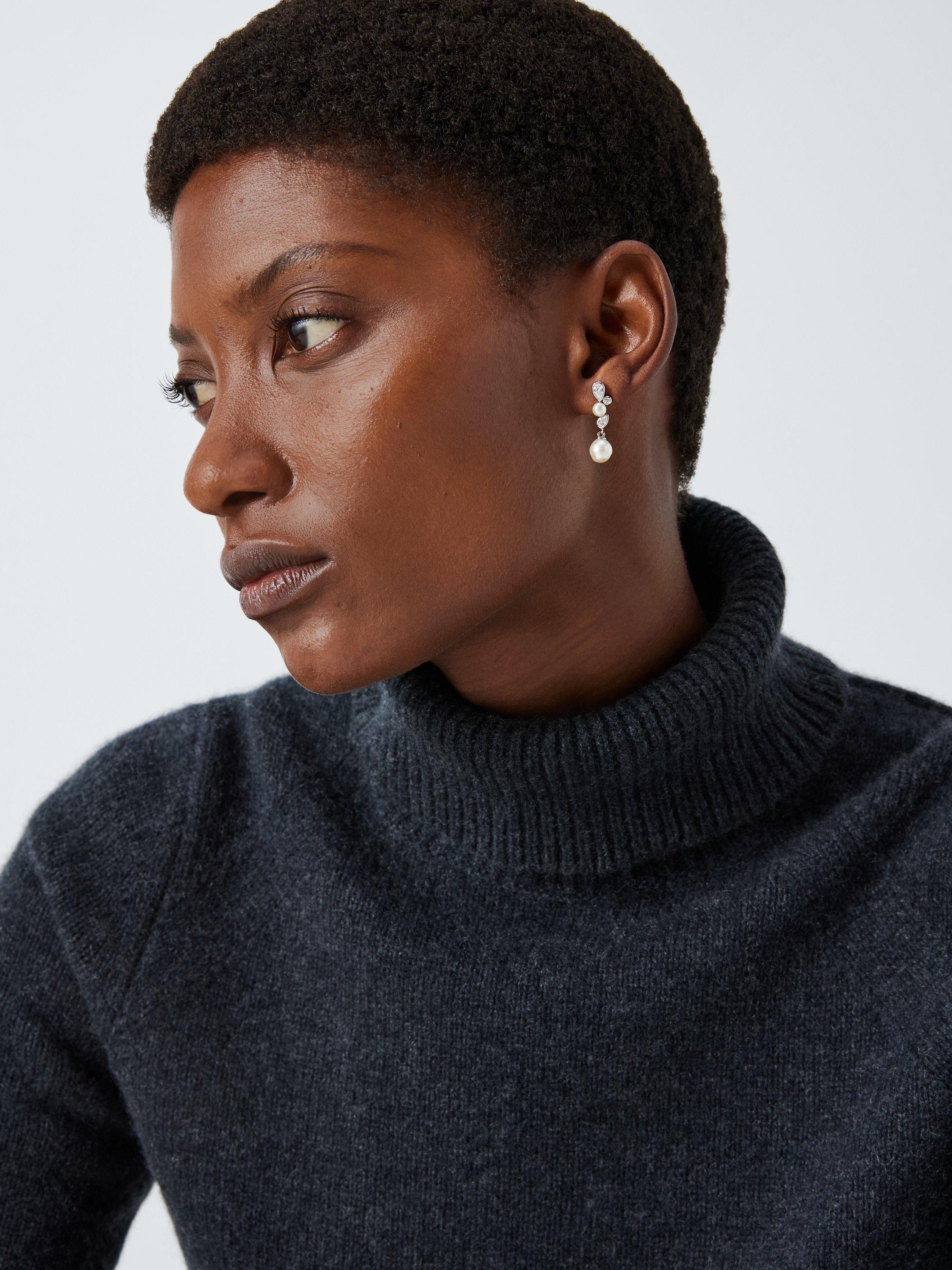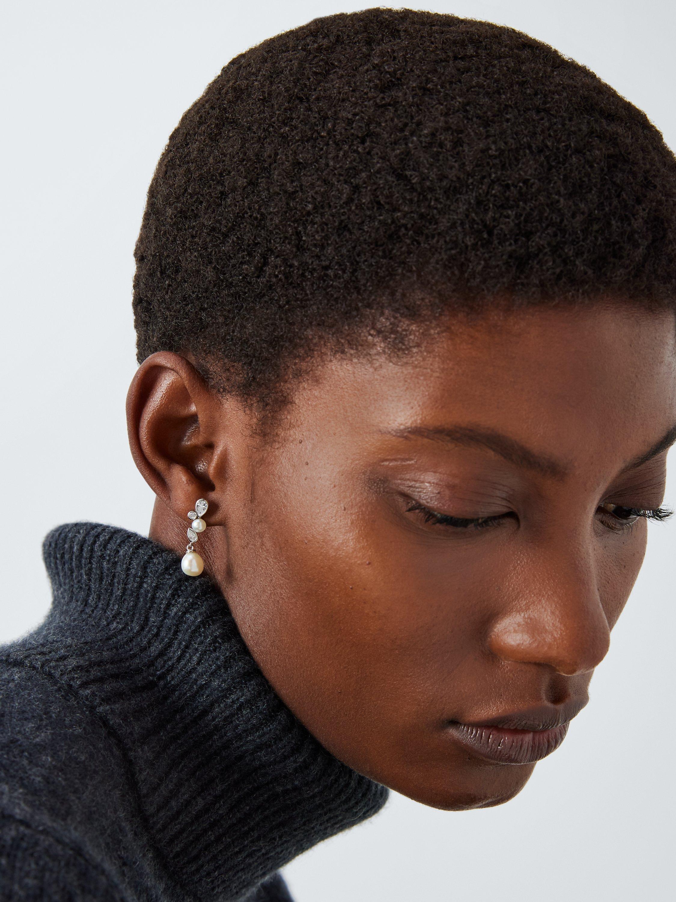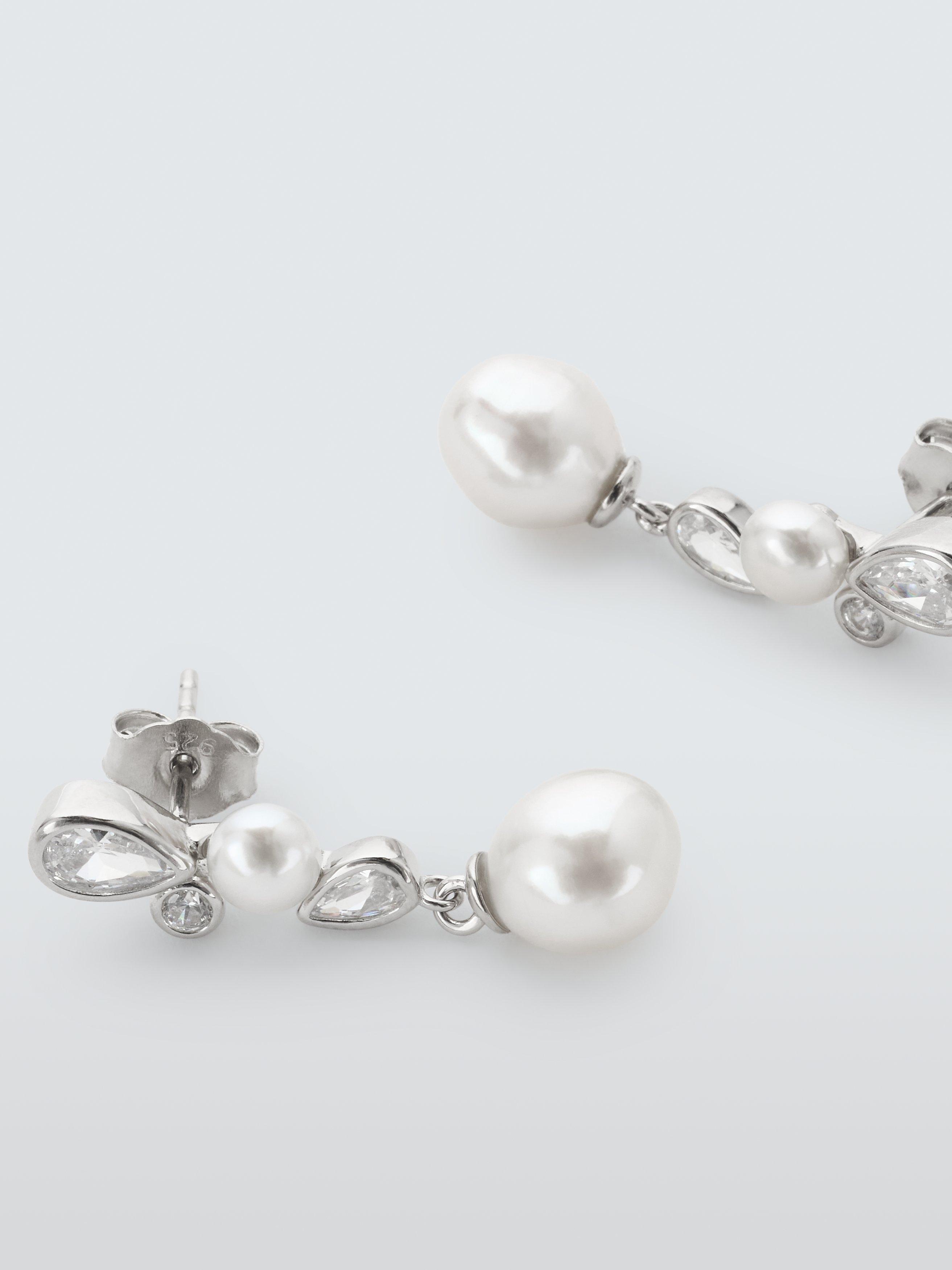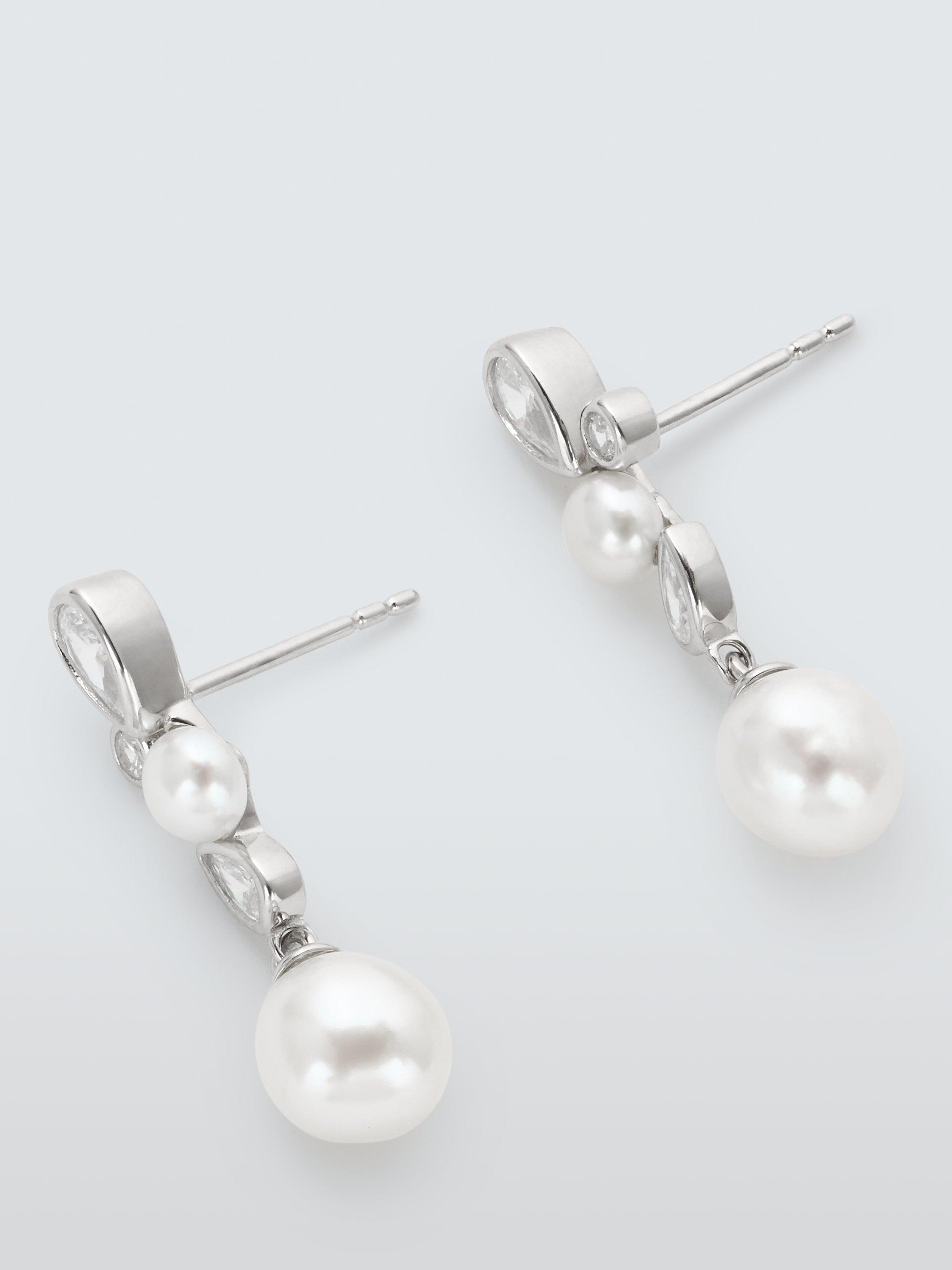 Alternating cubic zirconia gemstones and button freshwater pearls form the drop of these earrings. For pierced ears only.