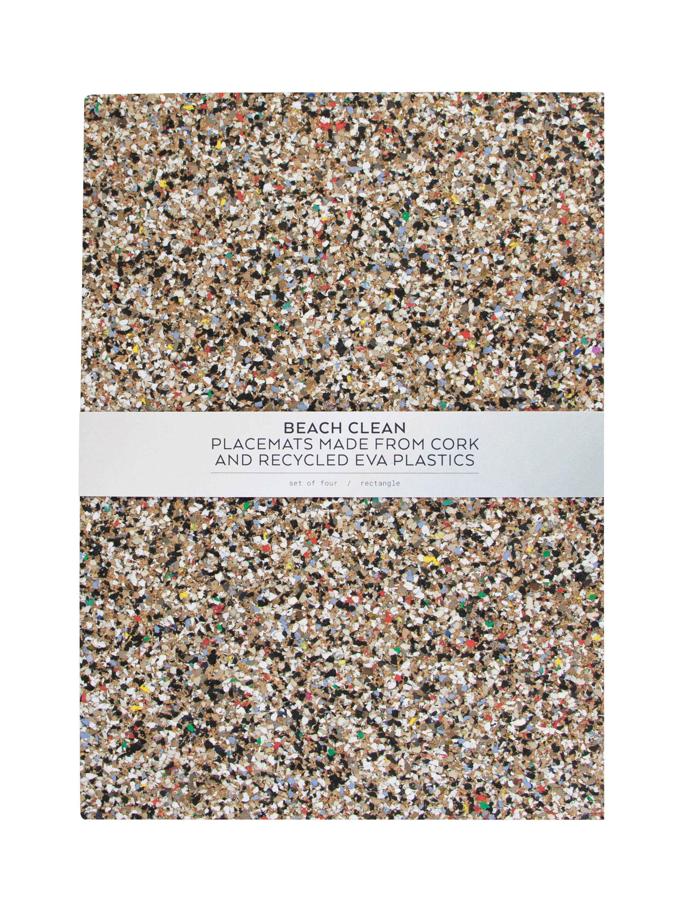 Four rectangular placemats made of LIGA's Beach Clean material, a clever mix of cork with recycled EVA plastics. Once unloved and part of the problem, these recycled plastics are now wanted and form a practical solution for your table.