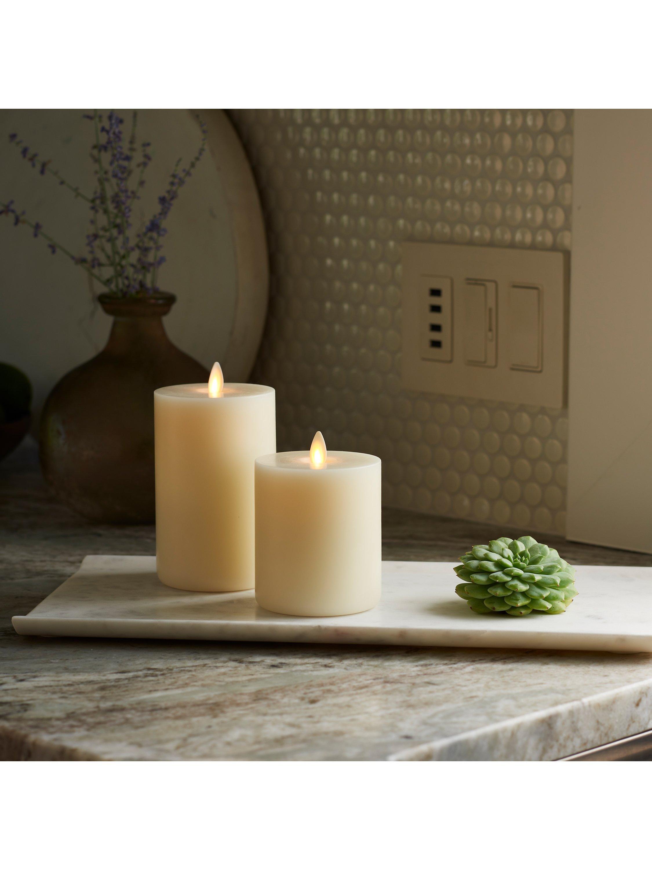 Easily turned on and off at the touch of a button, this candle also comes with 5 and 19-hour timer.