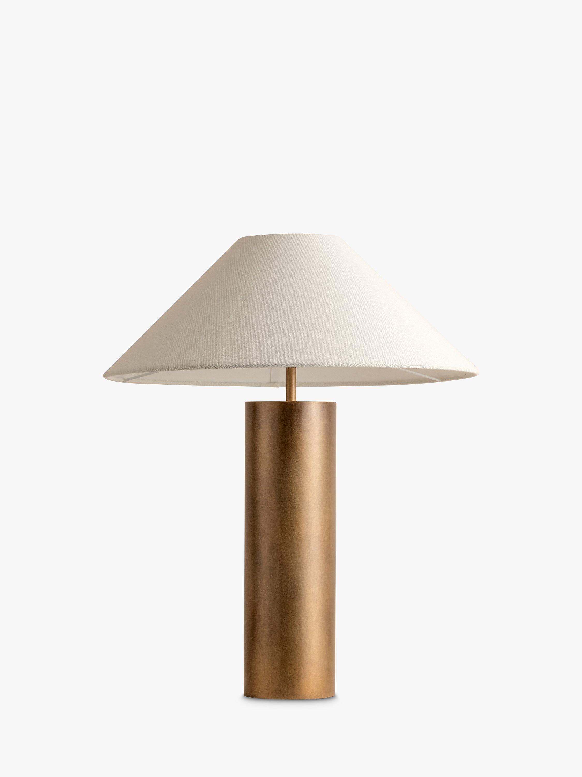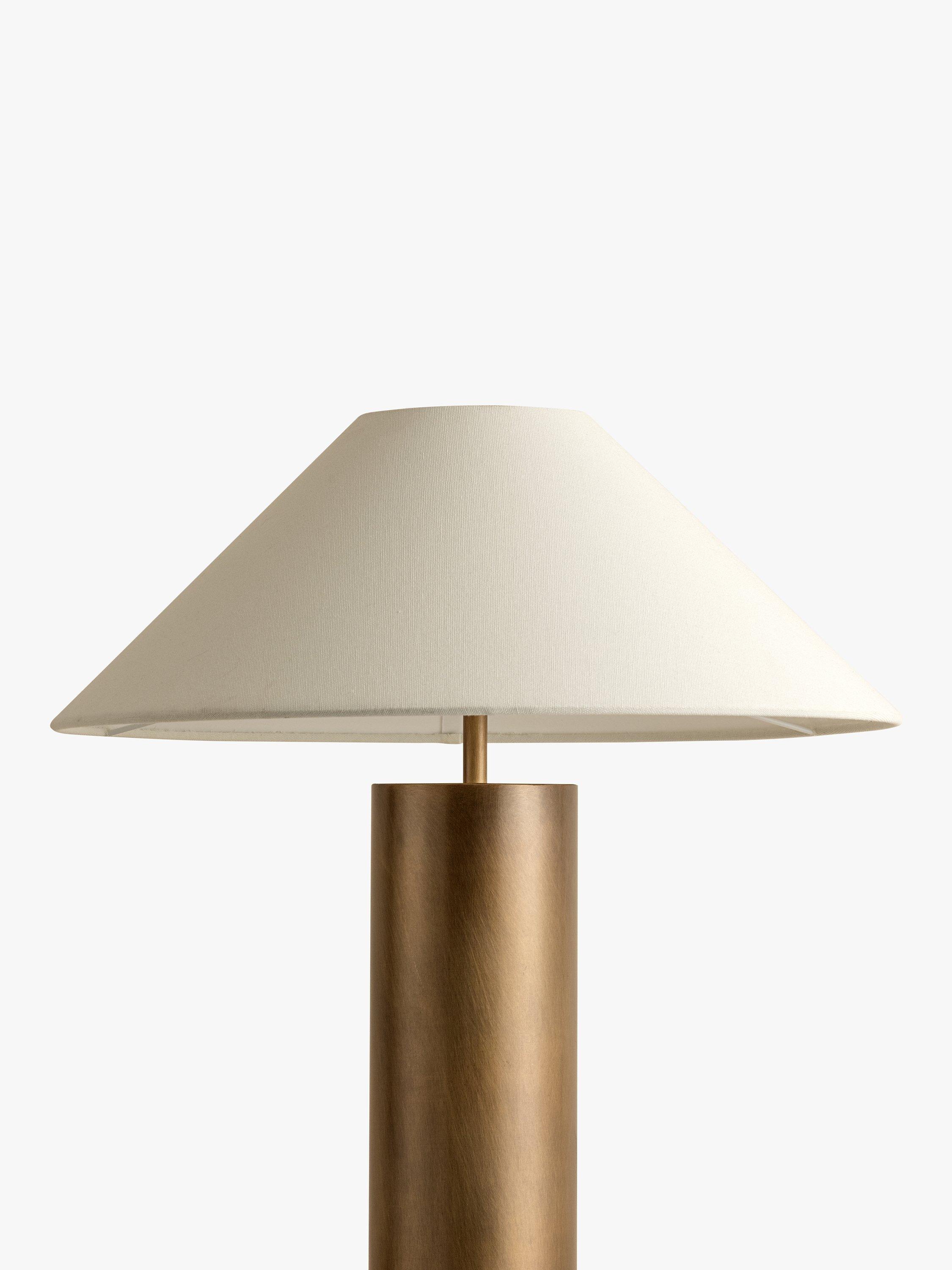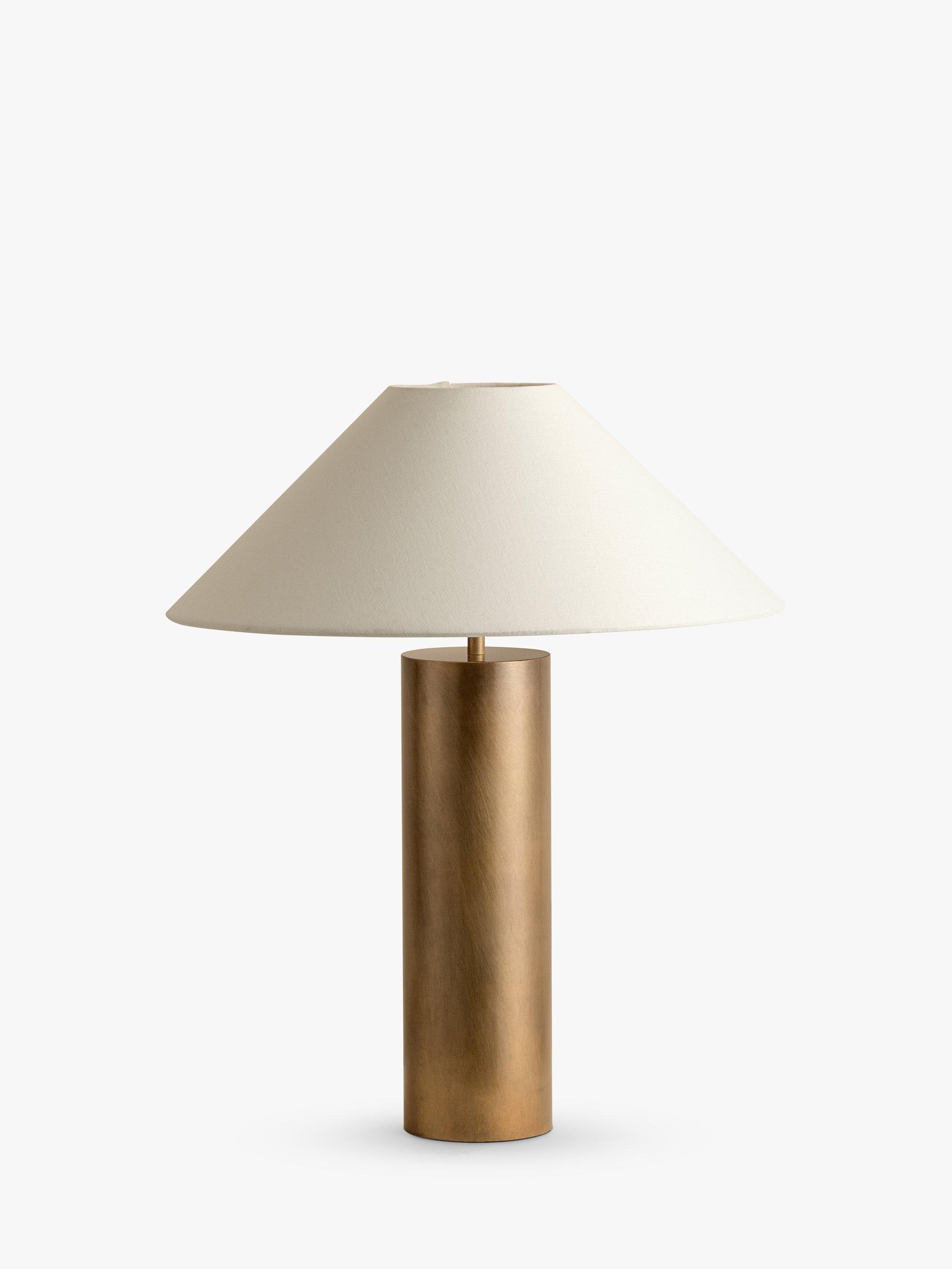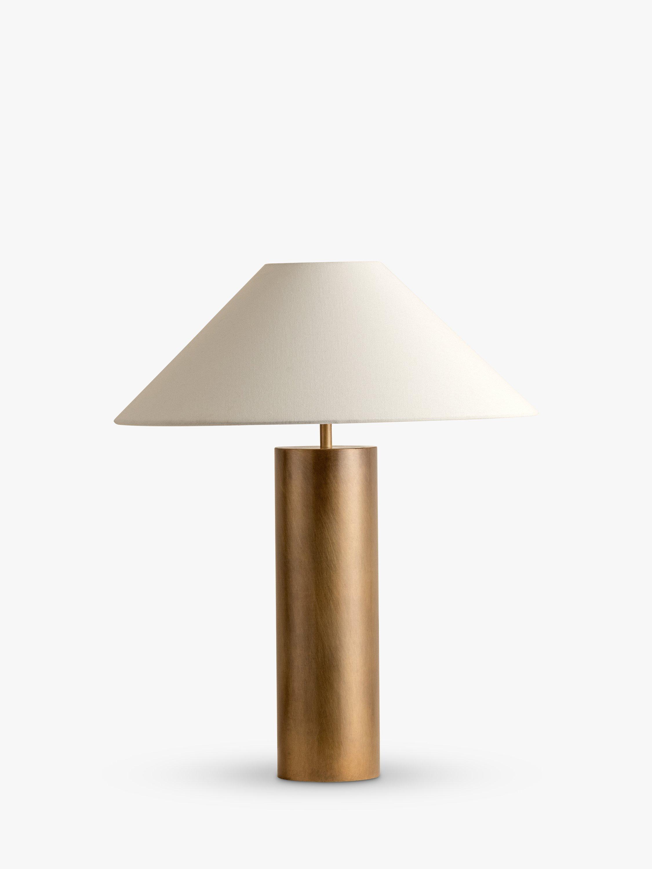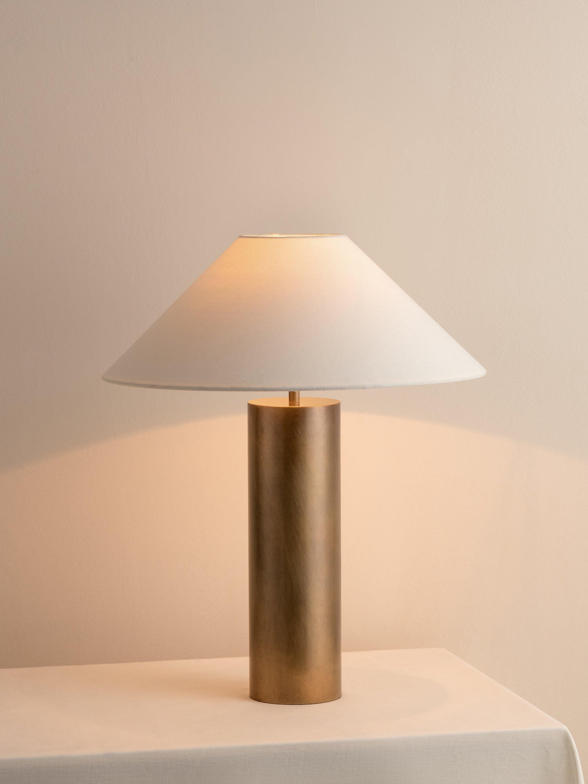 Elegant and timeless, the Bleeker table lamp showcases an minimalist brass coloured base which exudes warmth and timeless grandeur. A wide linen shade diffuses an ambient glow and adds a touch of natural elegance.