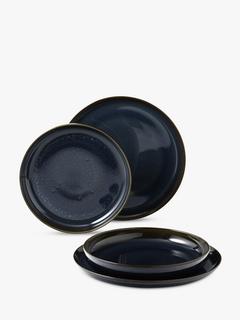 Four-piece dinnerware set from the Crafted collection, including two dinner plates and two 450ml soup bowls. Made of porcelain, they're microwave and dishwasher-safe.