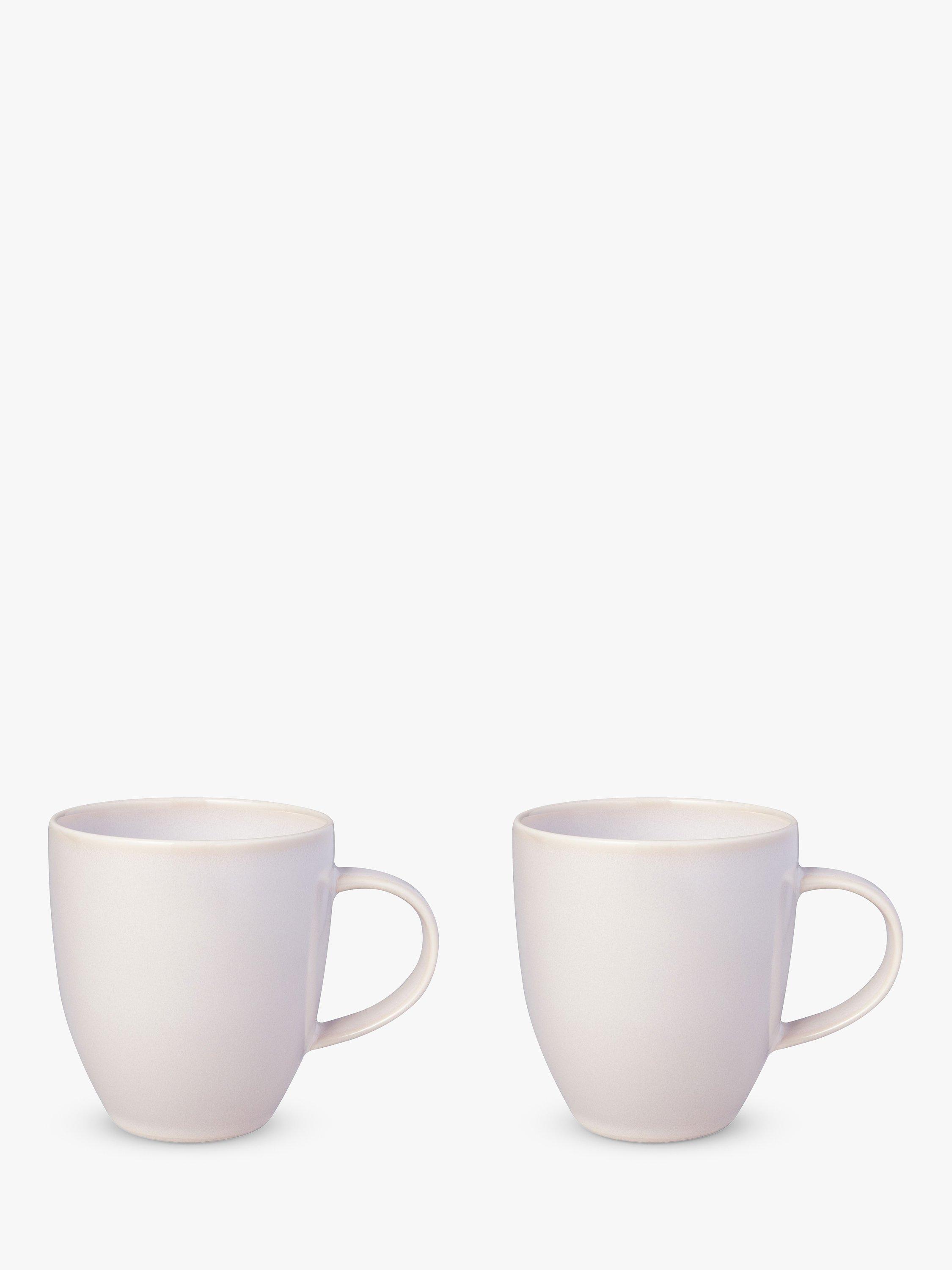 Pair of large mugs for coffee, tea or hot chocolate. Made of porcelain, they're microwave and dishwasher-safe.