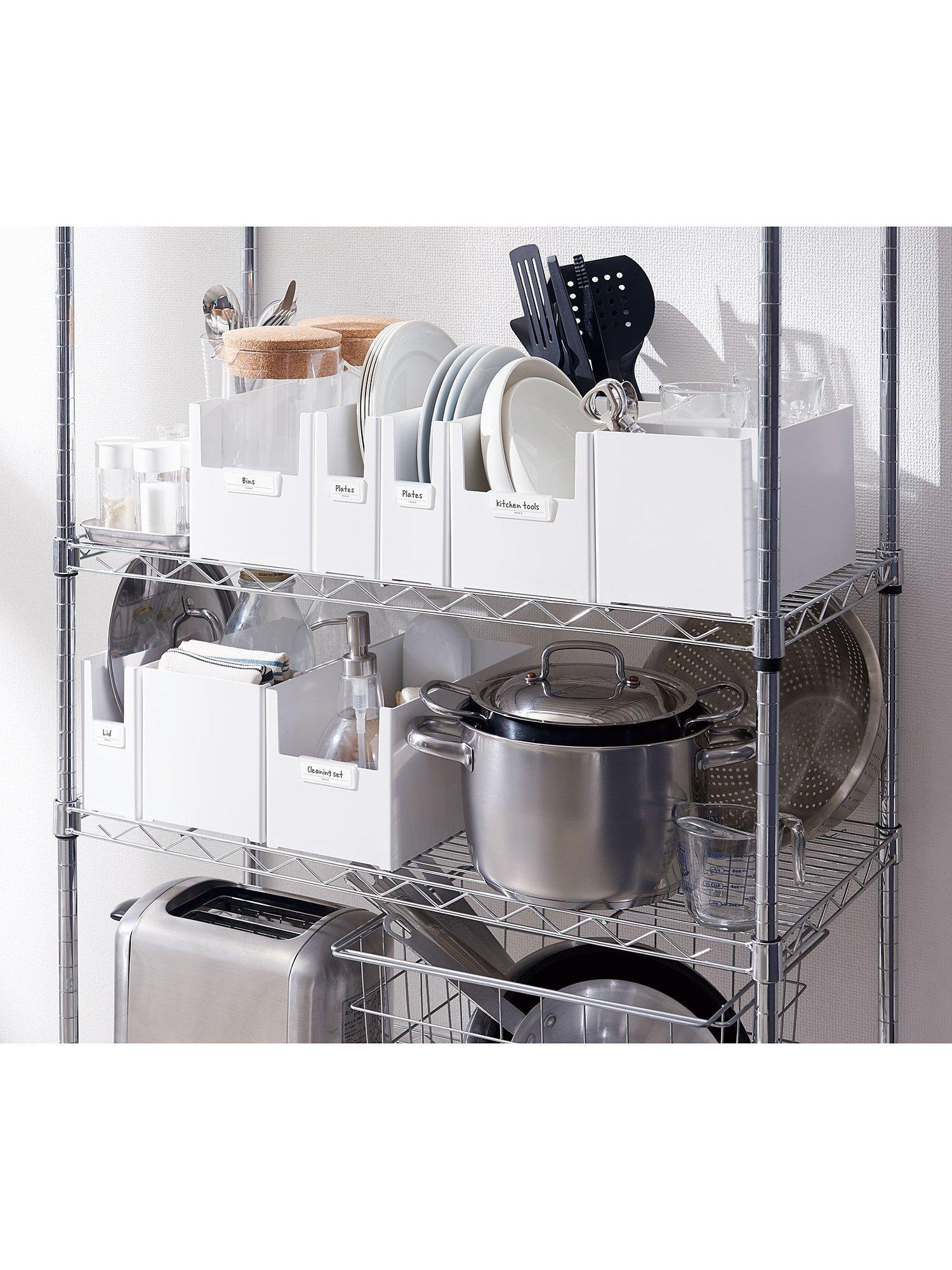 Designed to fit a variety of items, it features a clip to keep the organizers securely in place, preventing shifting; it can also be used as a label holder for easy access. It's stackable and slideable, with rounded corners for easy cleaning.