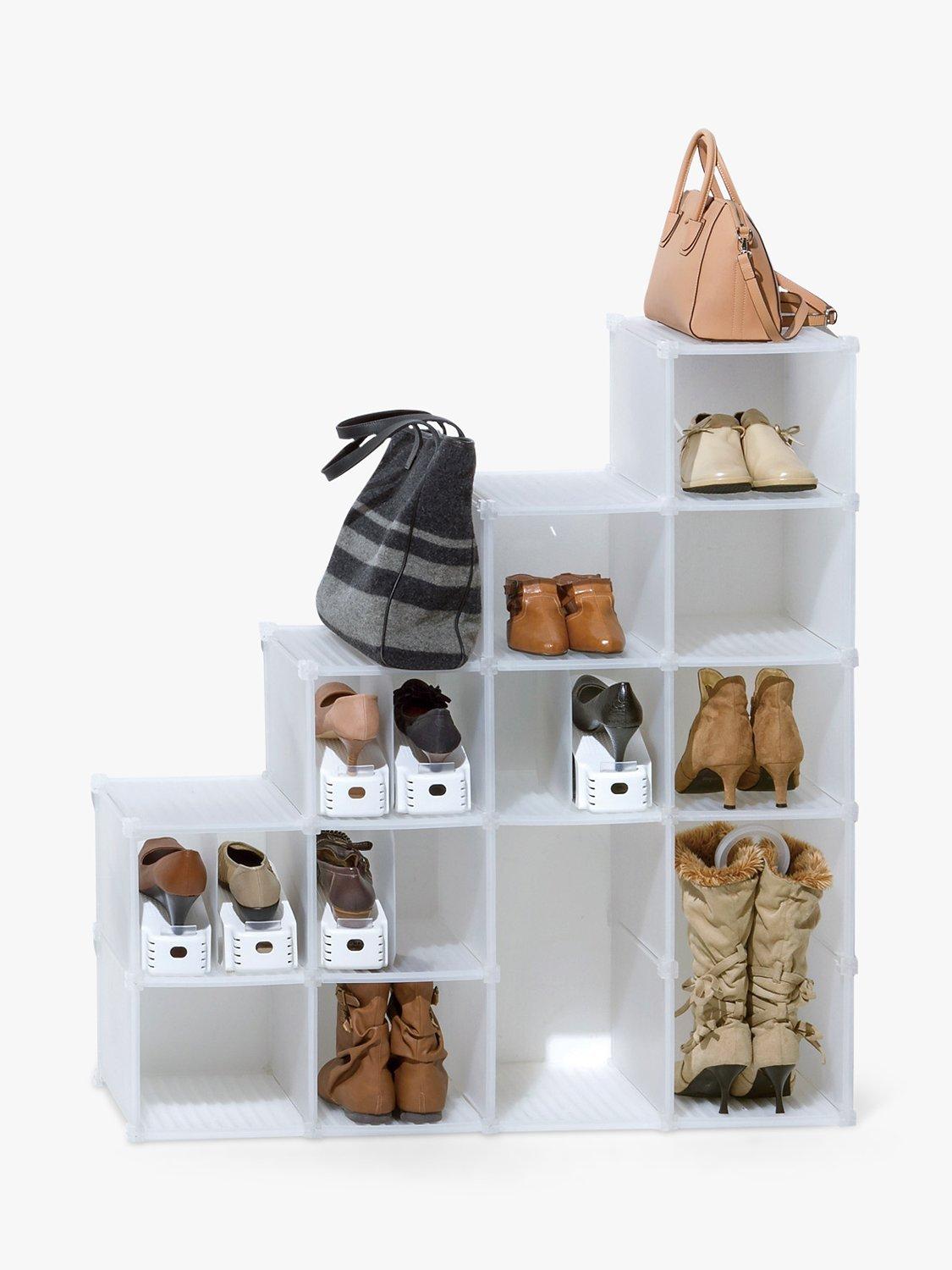 Use without the partition to store 1x pair on each tier. Use with the partition and the Like-It shoe holder (available separately) to store 2x pairs on each tier.