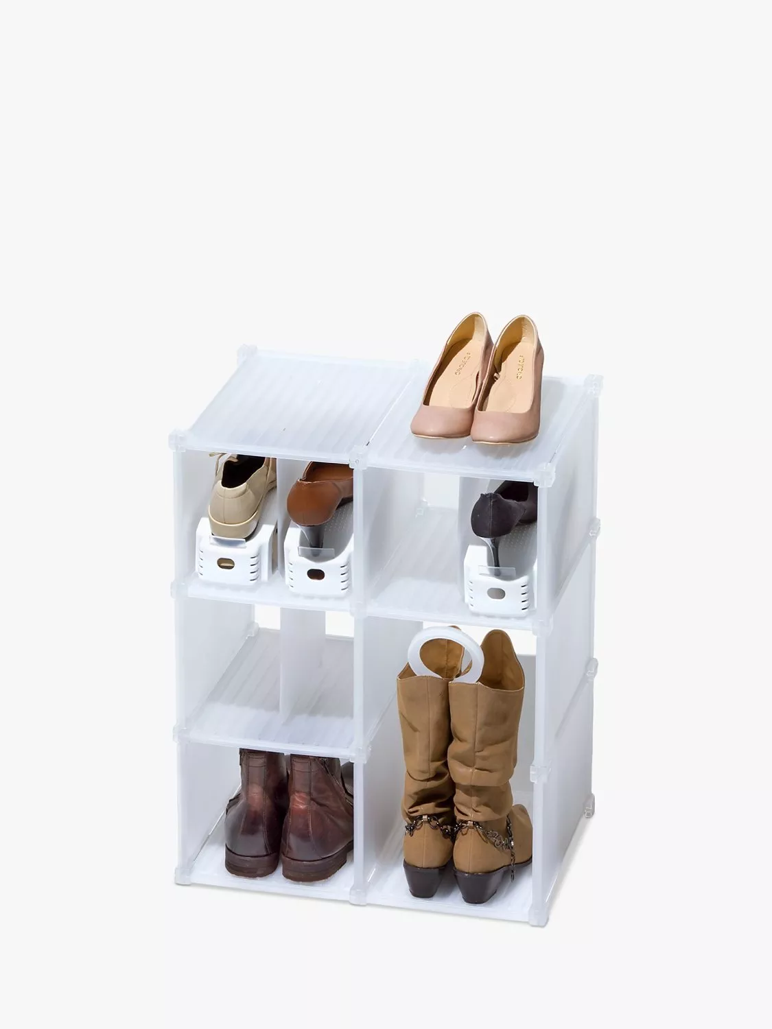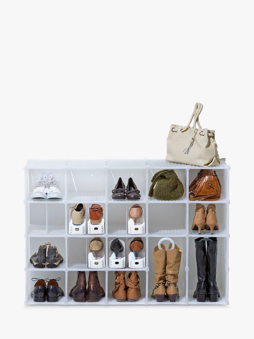 Use without the partition to store 2x pairs on each tier. Use with the partition and the Like-It shoe holder (available separately) to store 4x pairs on each tier.