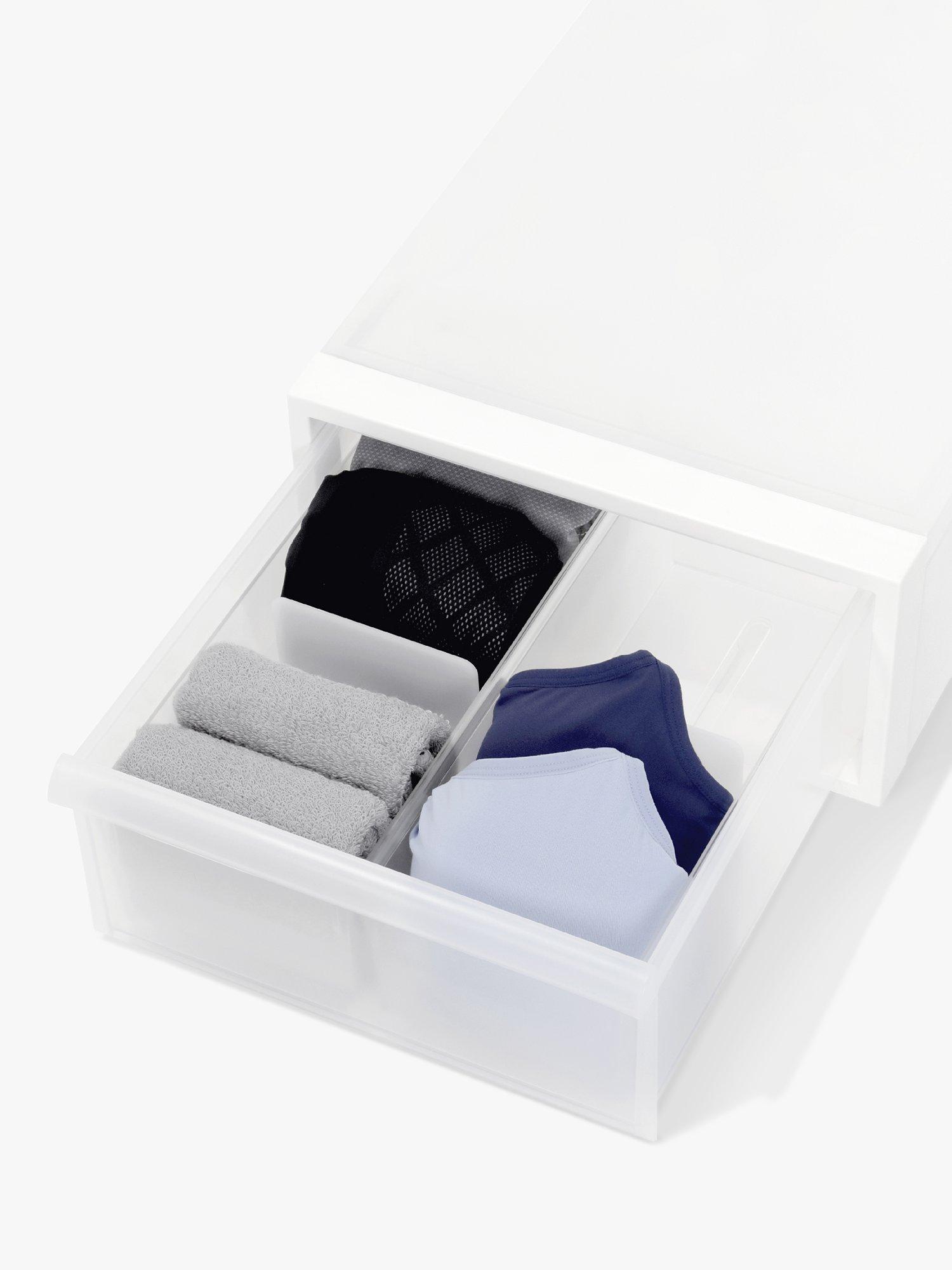 - Main body & Drawer: Polypropylene. Frame: Polystyrene