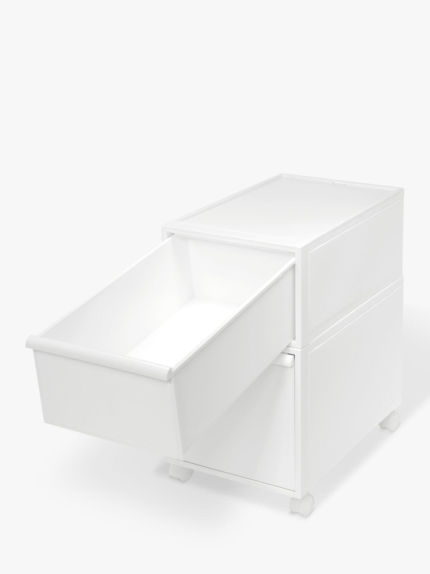 This functional stacking storage drawer from like-it has been designed with an integrated locking system to prevent instability whilst stacking, ensuring that your drawer is kept level when you open it.