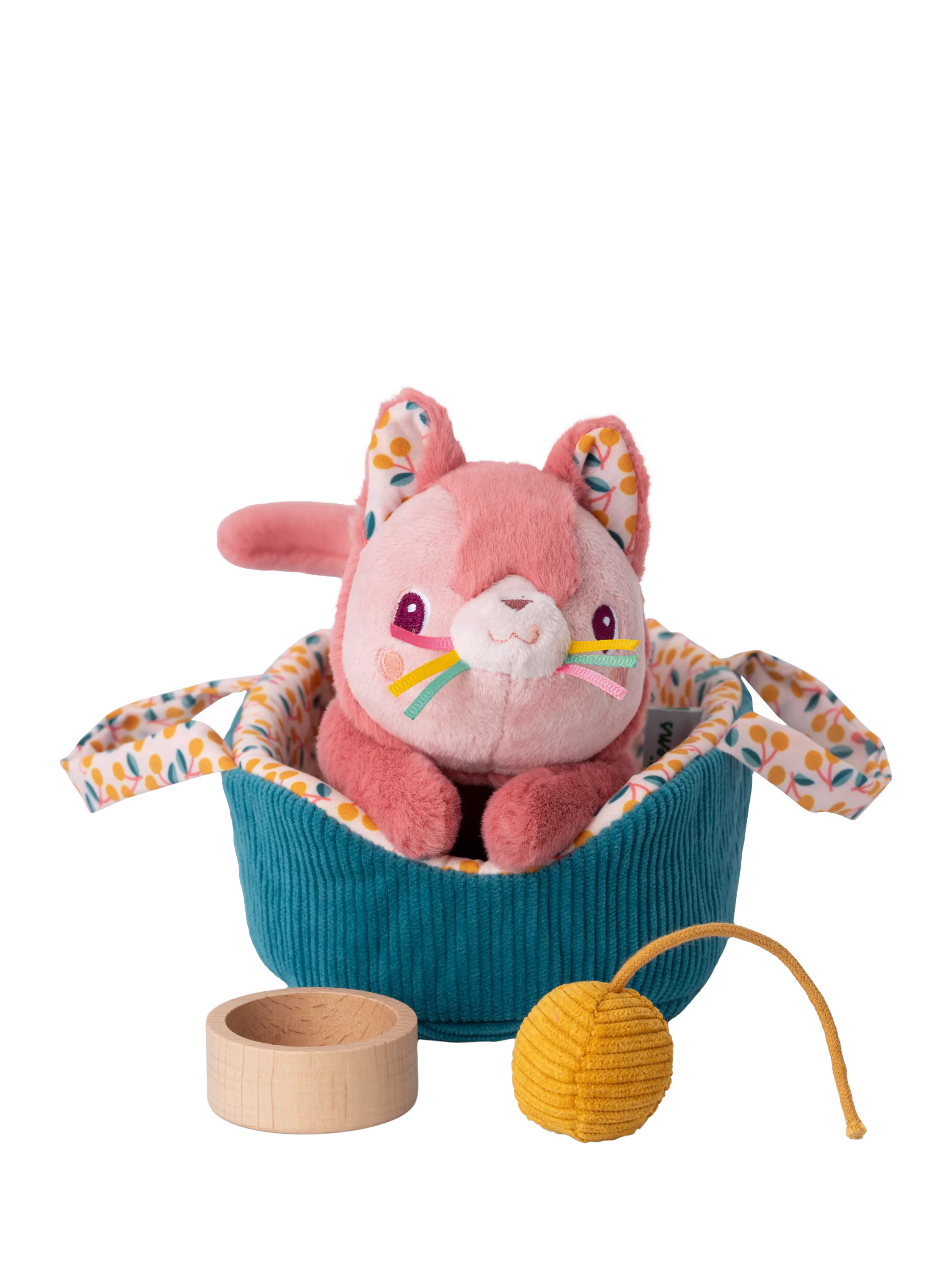 Snug in her cosy basket, Jeanne the kitten has a removable jacket, bowl and ball of yarn. Take care of her, petting and feeding her attentively. Jeanne loves to be cuddled and responds with gentle meows.