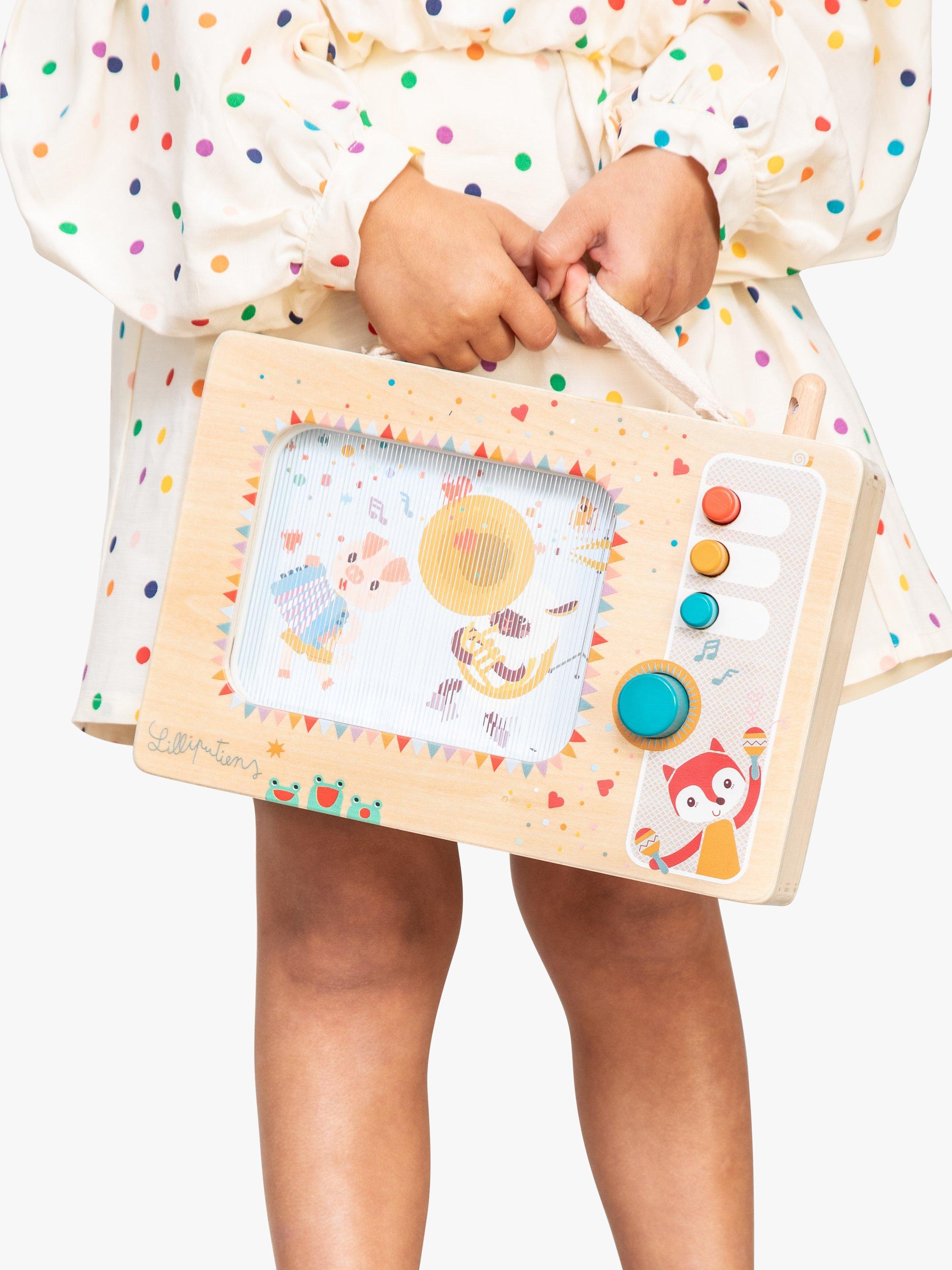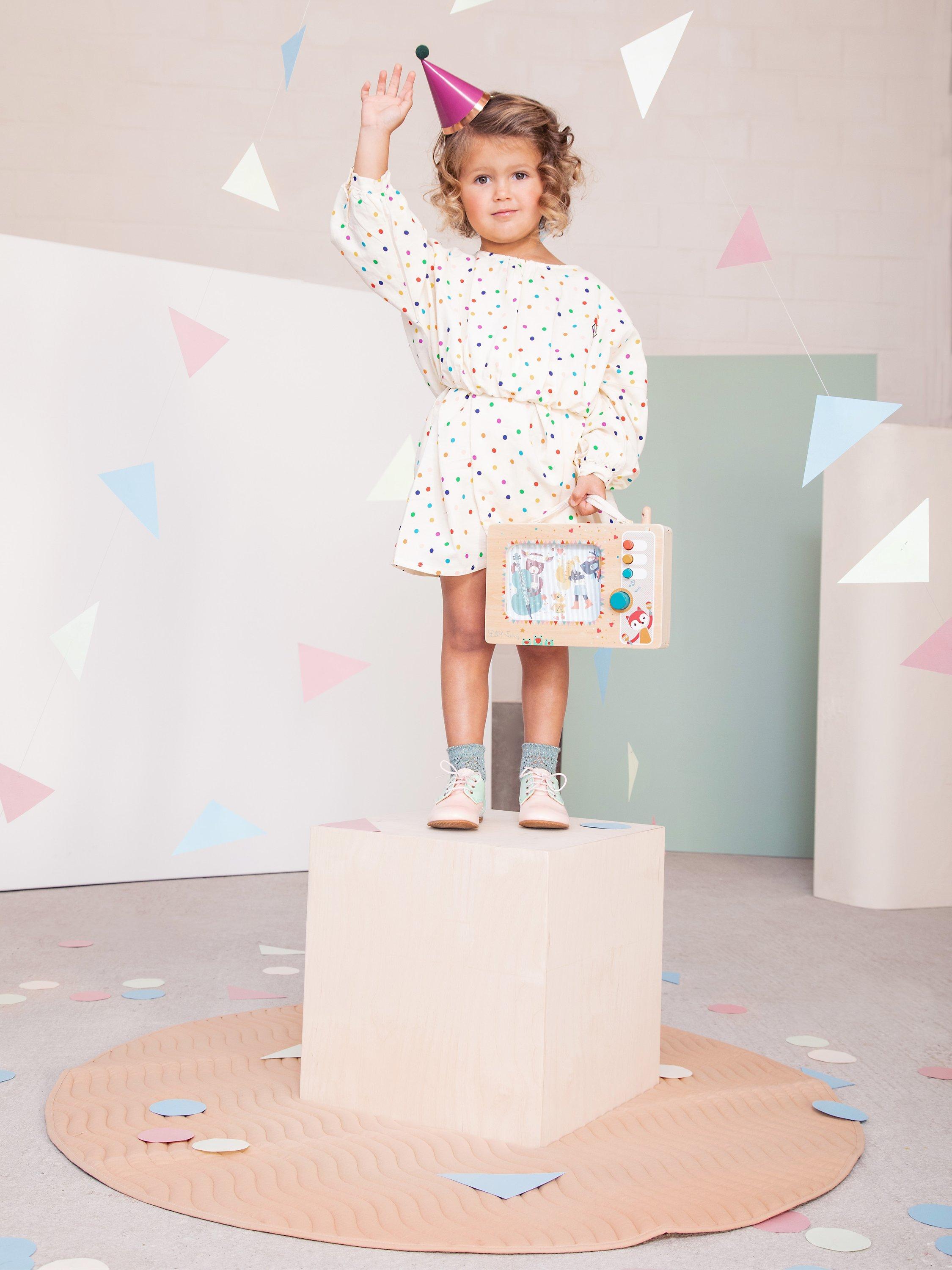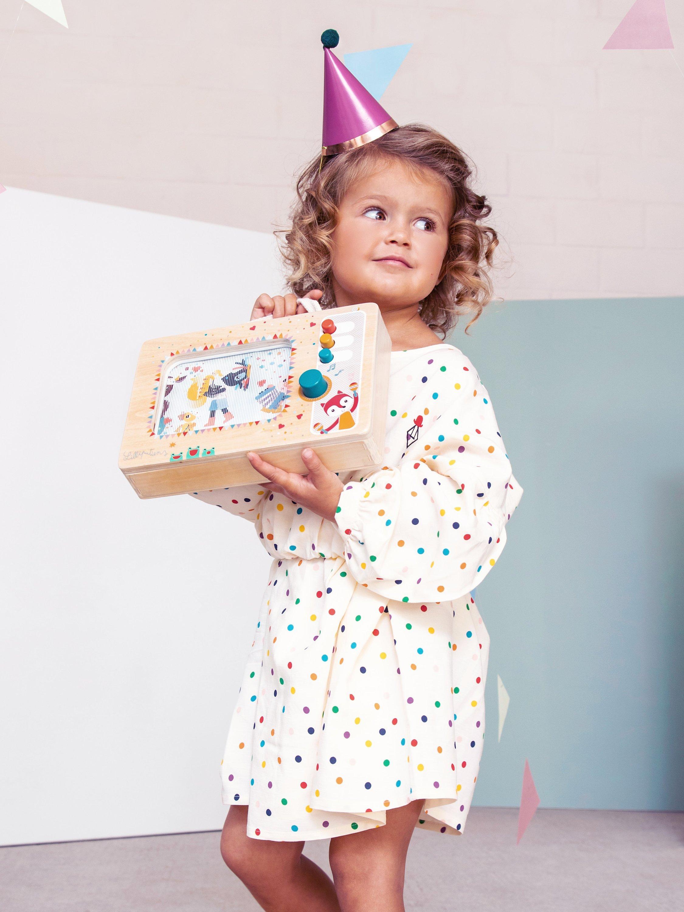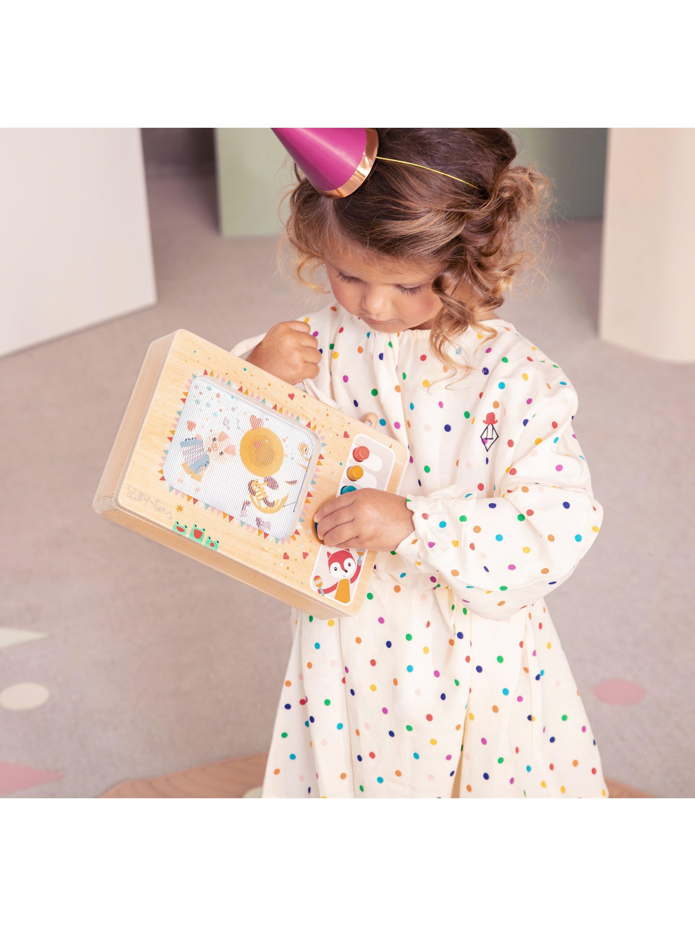 A quick turn of the button on the music box, and the orchestra is in full swing, striking up a joyful tune. Thanks to the handle, you can take this beautifully illustrated music box wherever you may go.
