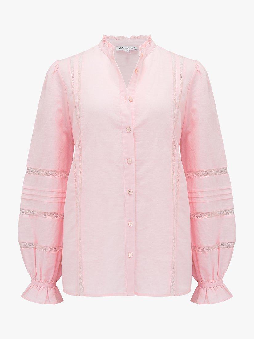 A beautiful, feminine take on a classic shirt style, this cotton-linen top from Lily and Lionel comes with sophisticated details like the lace panelling on the sleeve, leading to gorgeous, ruffled cuffs.