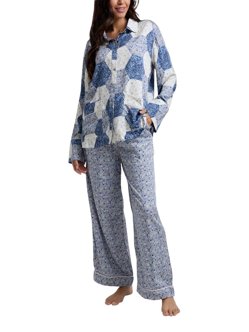 Lily and LionelEvie Aster Patchwork Satin Pyjama Set, Blue