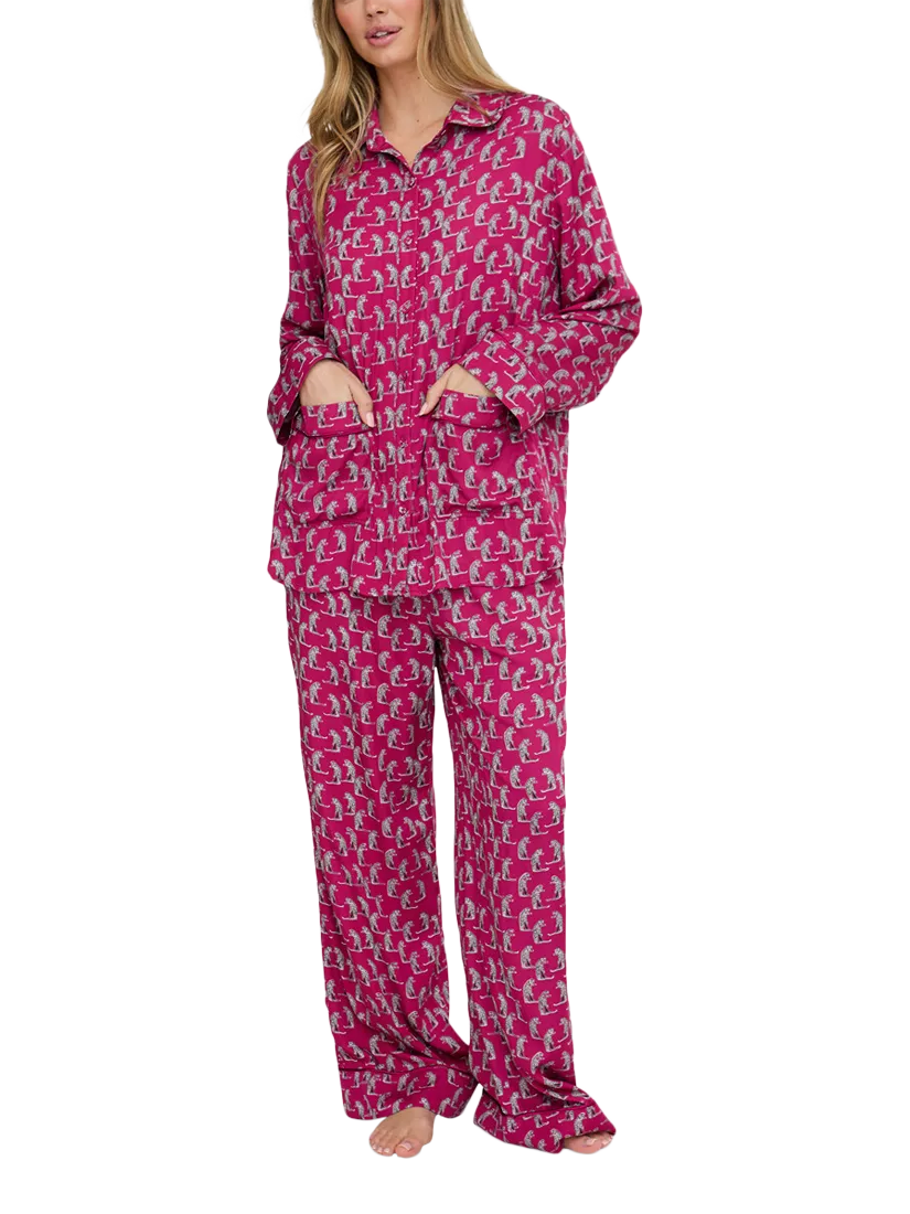 The purr-fect addition to your nightwear selection, this long-sleeve pyjama set from Lily and Lionel is whipped up from breezy viscose for undisturbed sleep.