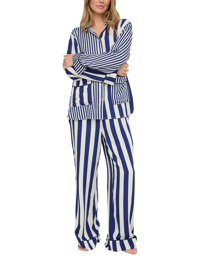 Swathed in stripes for a style that'll only encourage you to hit snooze, this long-sleeve pyjama set from Lily and Lionel is crafted from pure viscose for ultimate feel-good comfort .