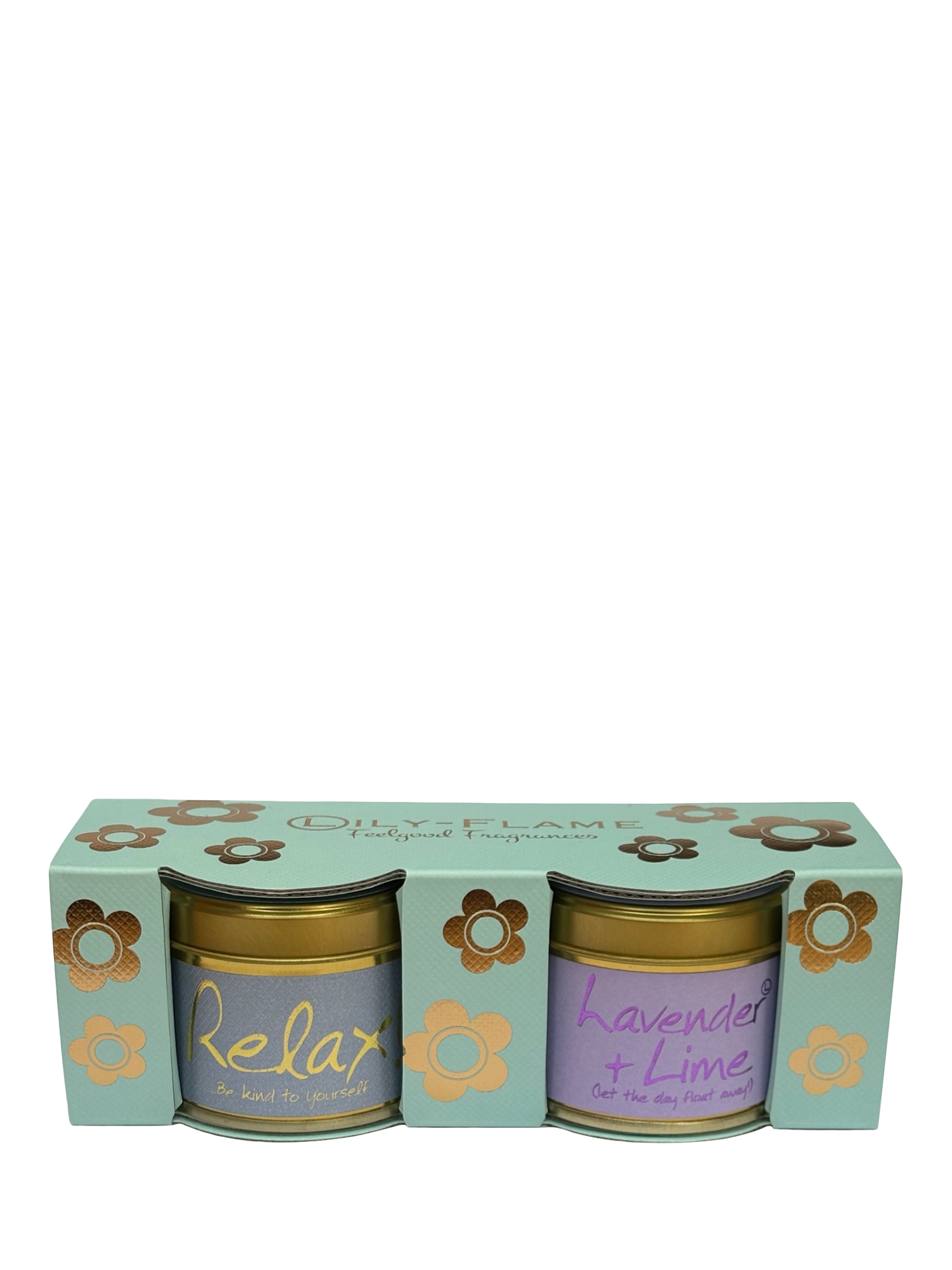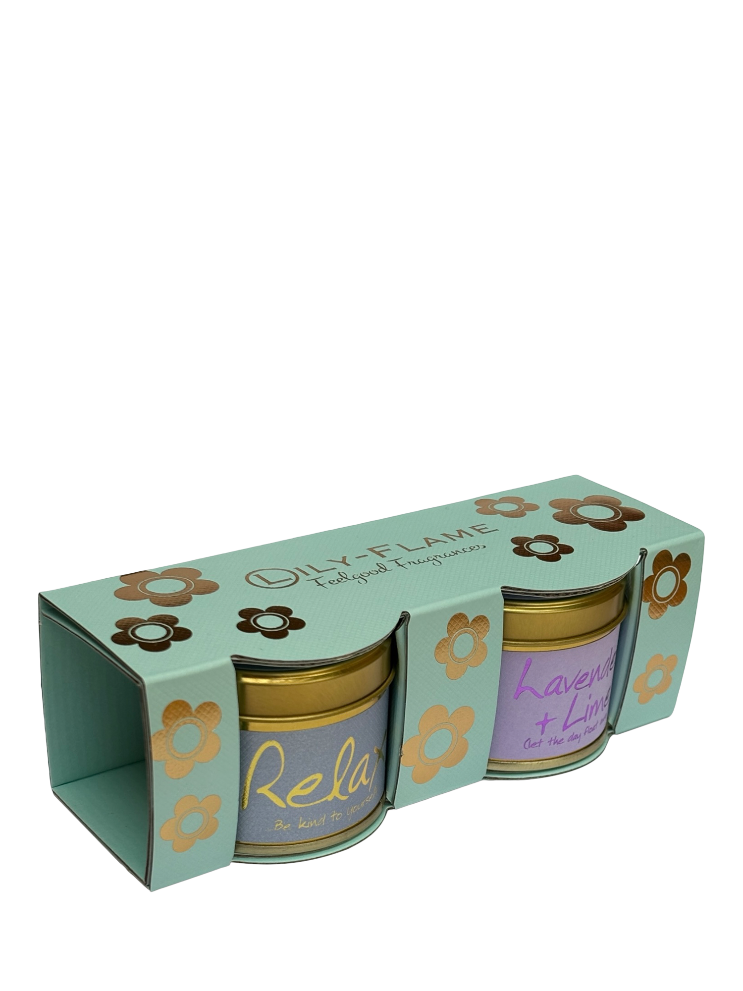 A Beautiful Calming Gift Set containing two Classic Lily-Flame Scents in a cute mini, travel sized tin.