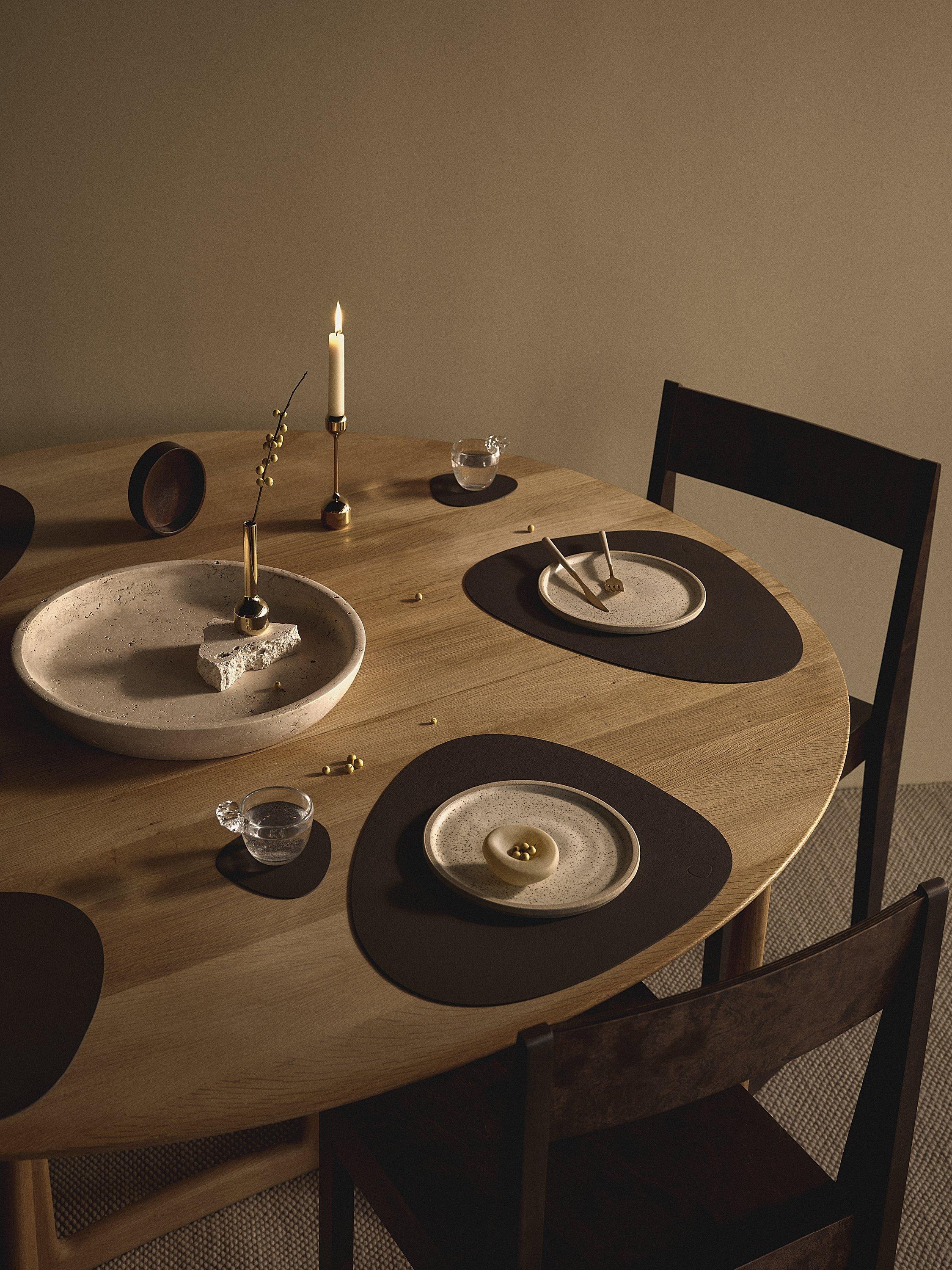 An organic-shaped placemat to protect your table or tablecloth from stains. Made in Denmark, it's from LIND DNA's Nupo collection featuring their most popular recycled leather texture, characterised by a suede-like surface with a soft, matte structure. The curve shape is timeless in design with a contemporary feel. Combine the placemat with matching or contrasting coasters from LIND DNA to complete your table setting.