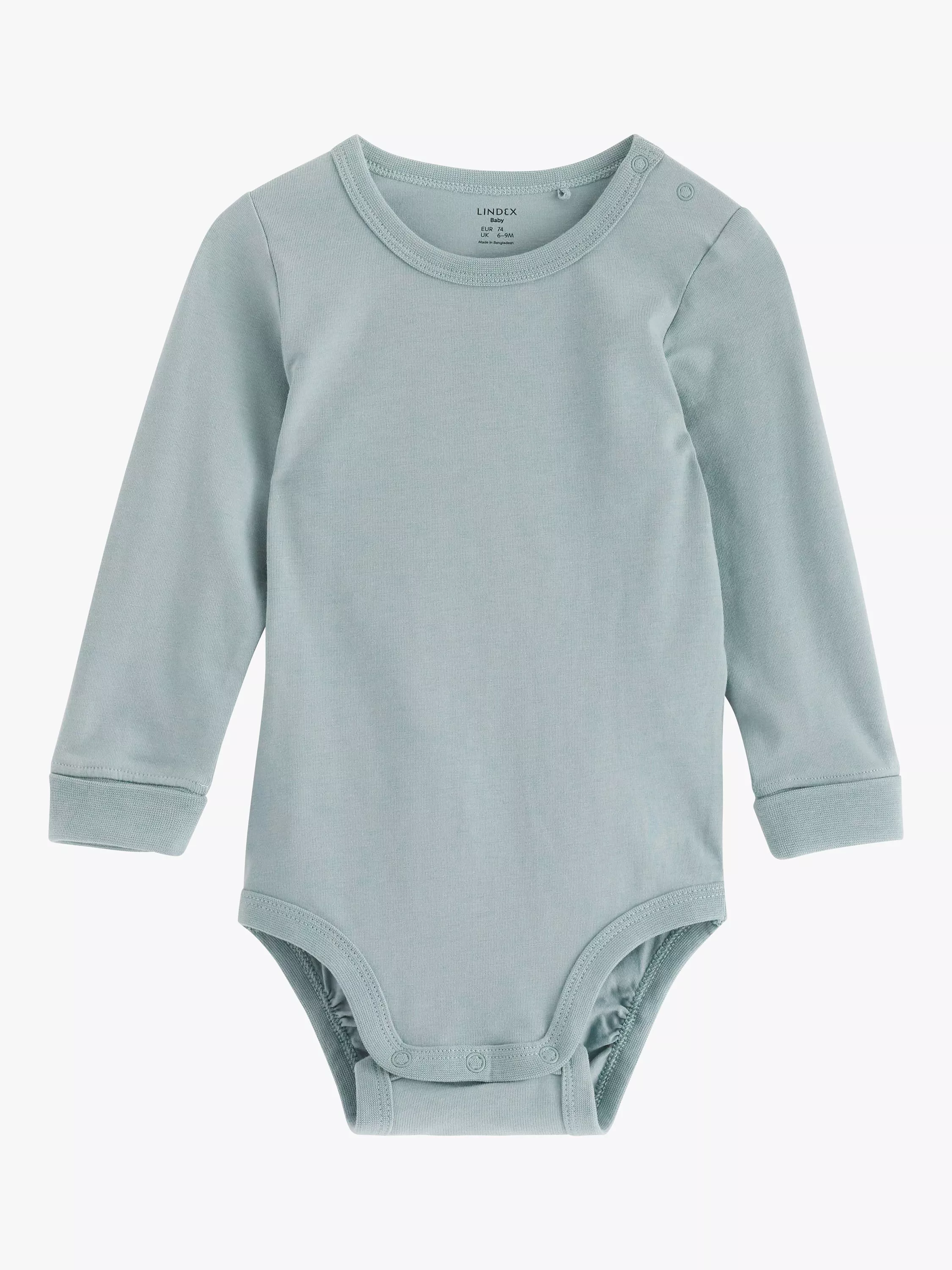LindexBaby Basic Long Sleeve Organic Cotton Bodysuit, Light Dusty Green