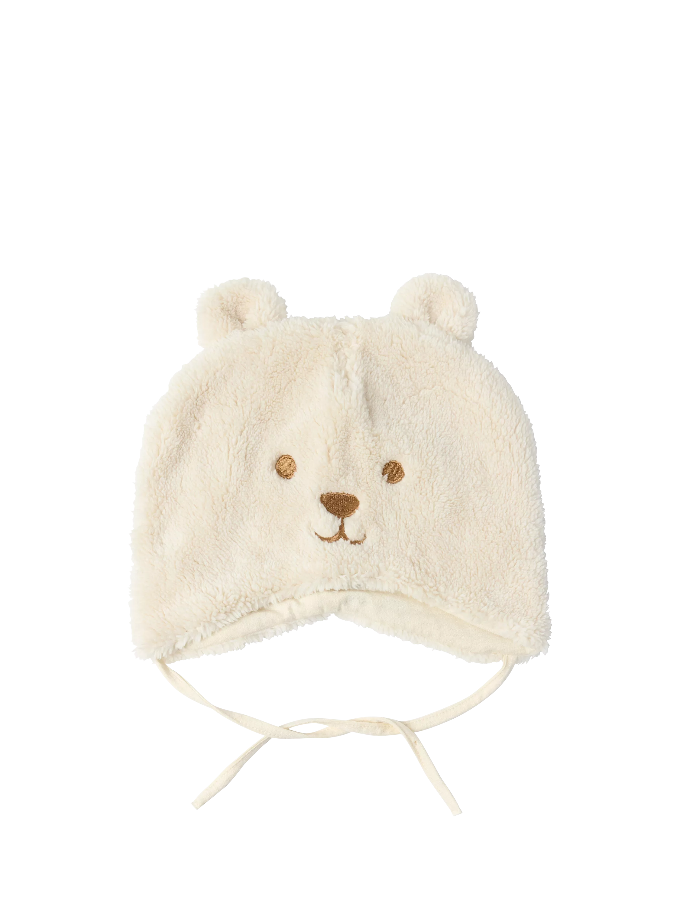 As cute-as-can-be, this soft embroidered bear hat from Lindex comes in pile with a jersey lining, sewn-on ears and tie bands.
