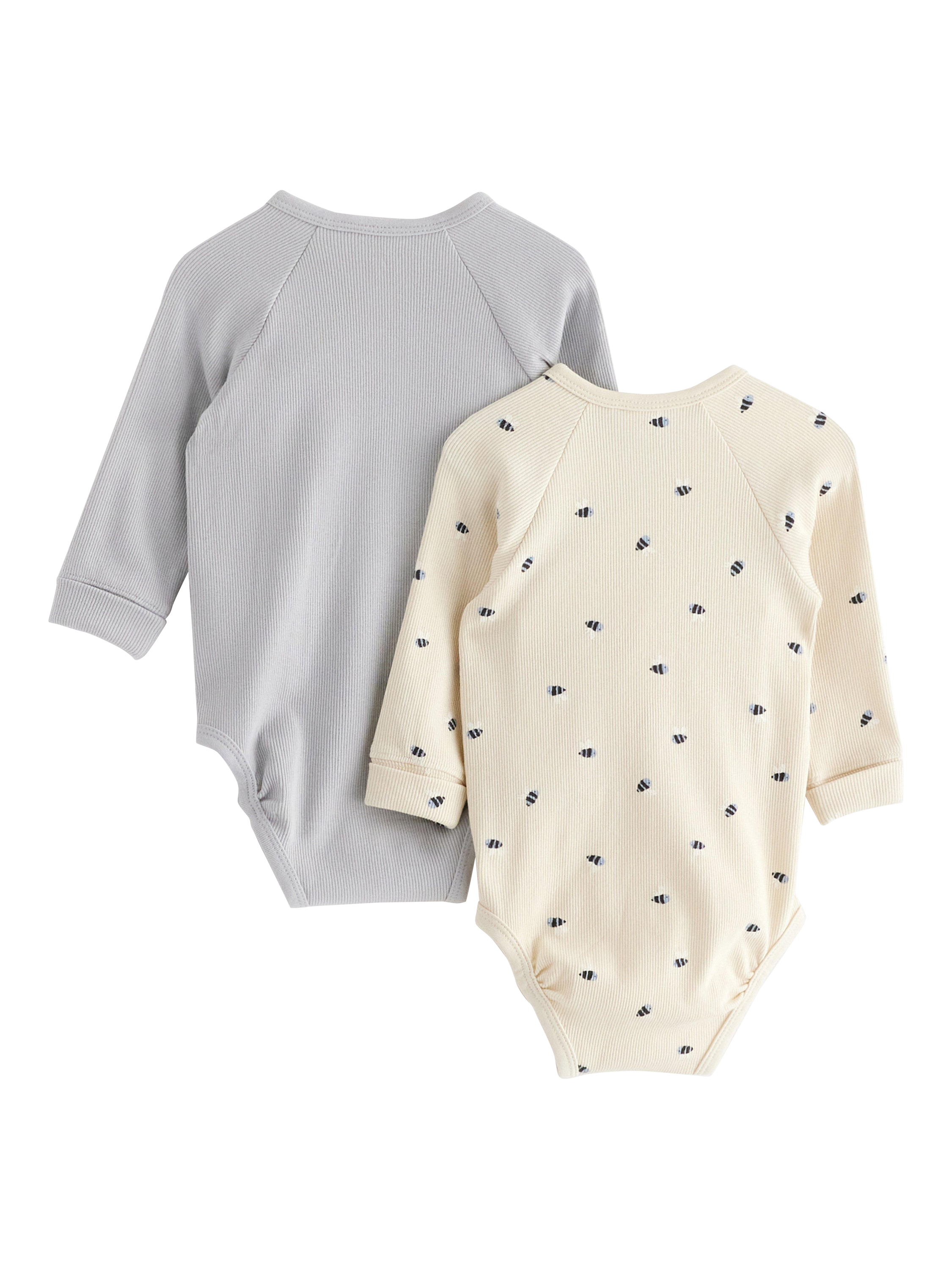 LindexBaby Bumblebee Ribbed Wrap Front Long Sleeve Bodysuits, Pack of 2, Light Dusty Blue