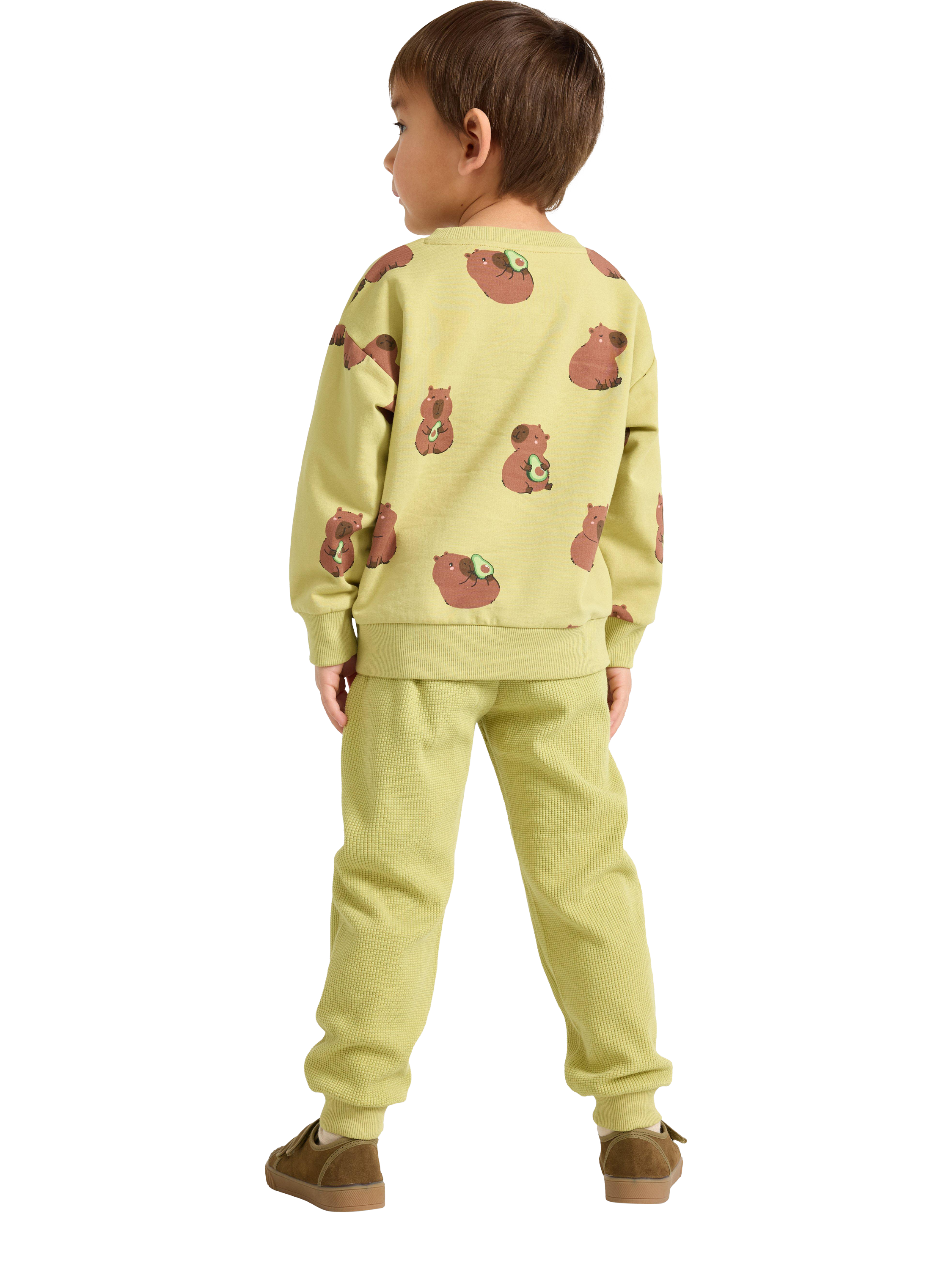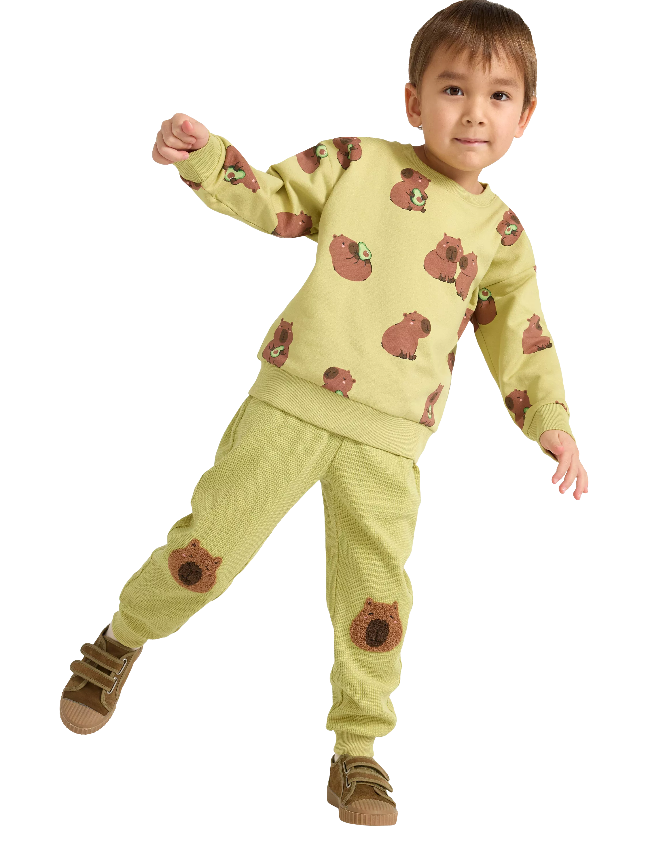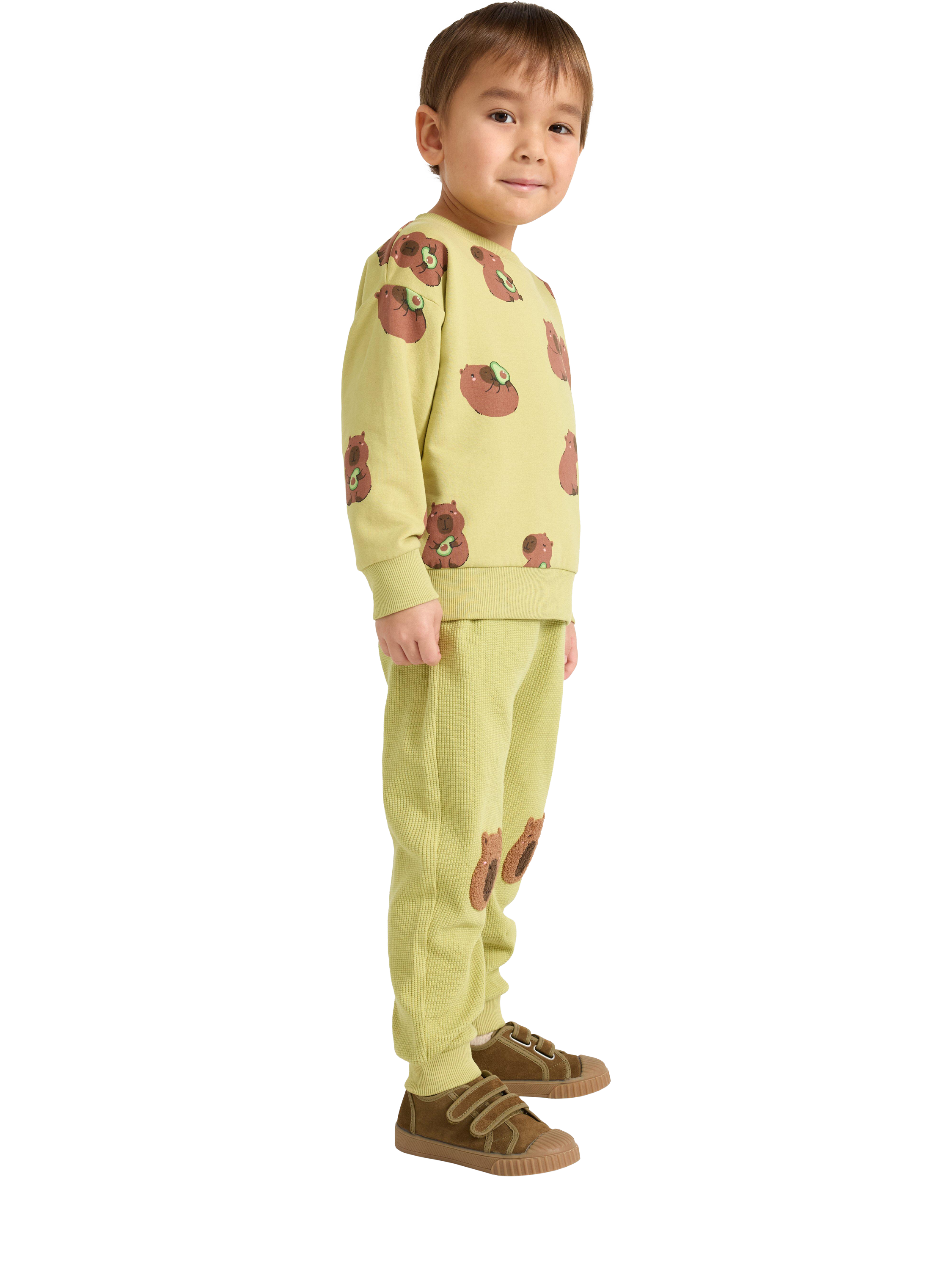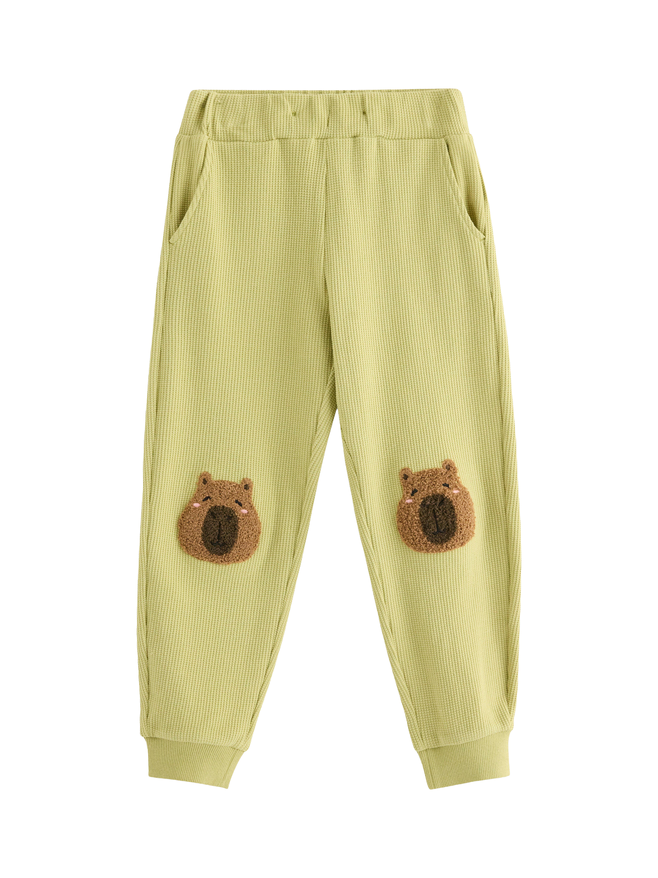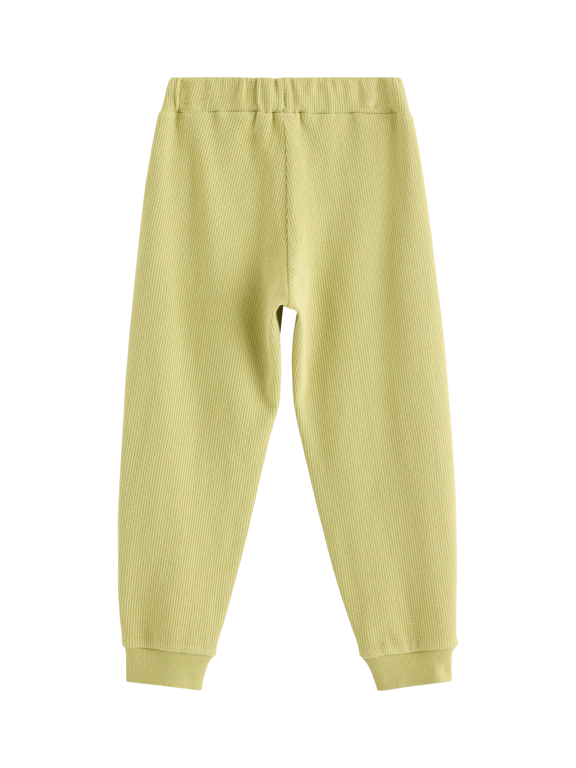 Joggers in a waffled cotton blend, with terry fabric knee patches and adjustable waist.