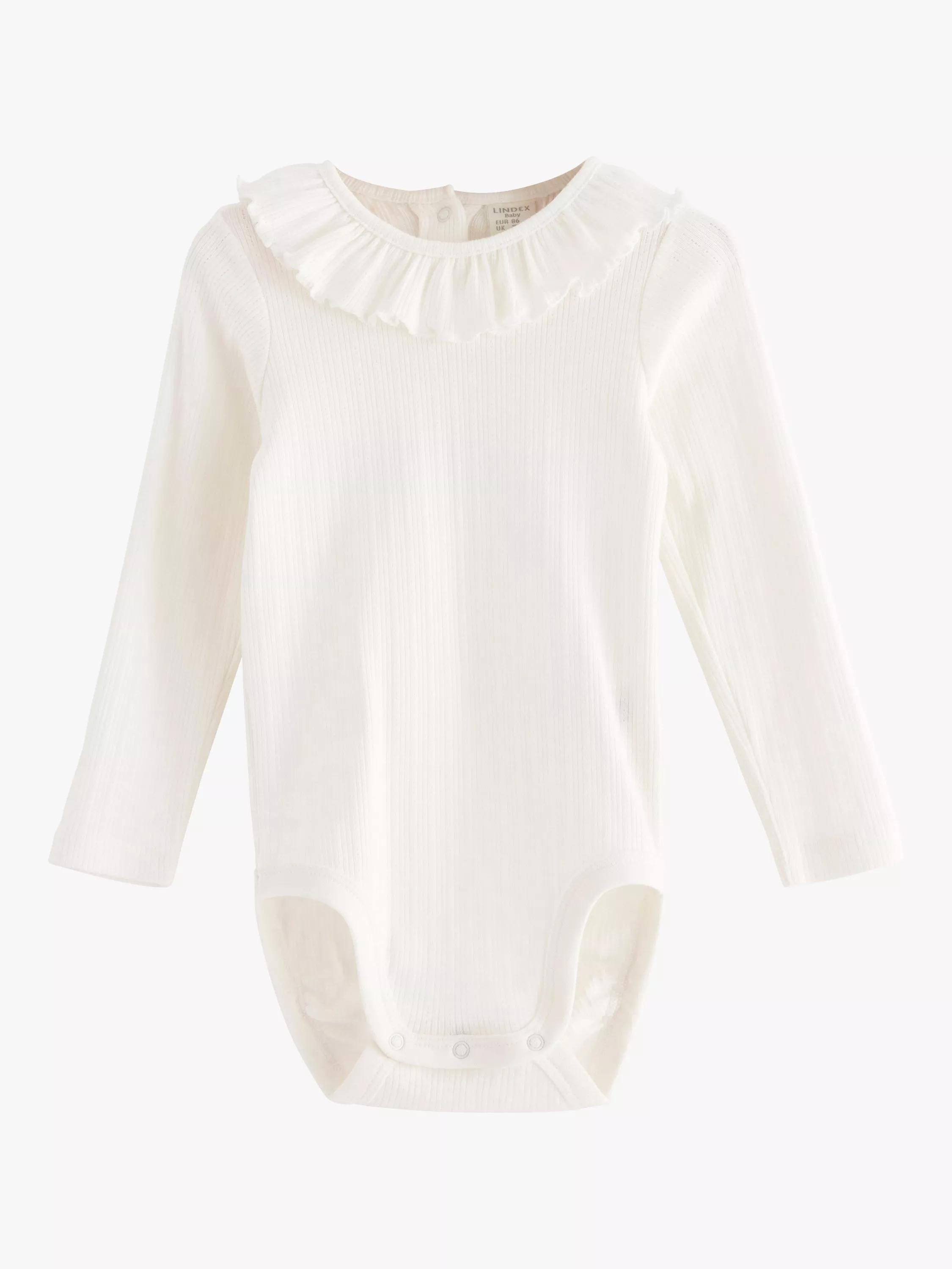 Made from soft and comfy organic cotton in a ribbed design finished with a frill neckline.